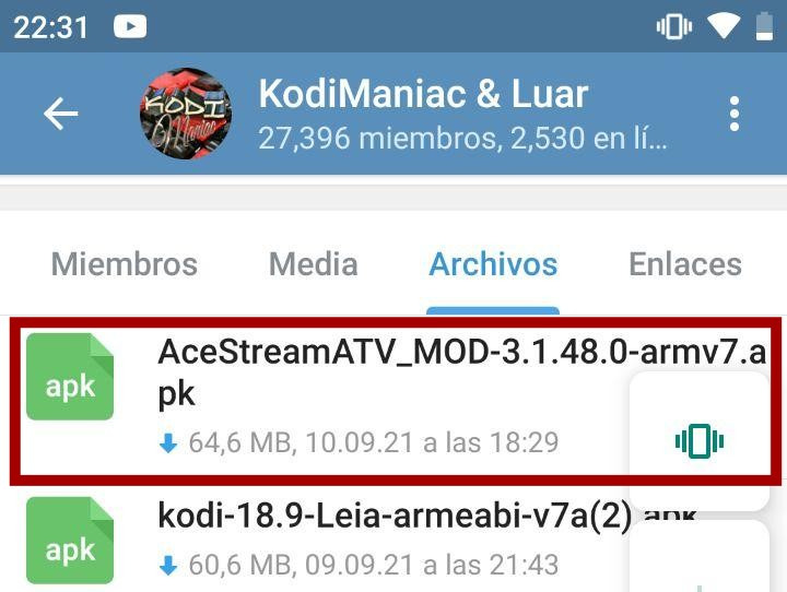 Salimos de Kodi y descargamos alguno de los Acestream Mod que hay en los archivos del grupo.