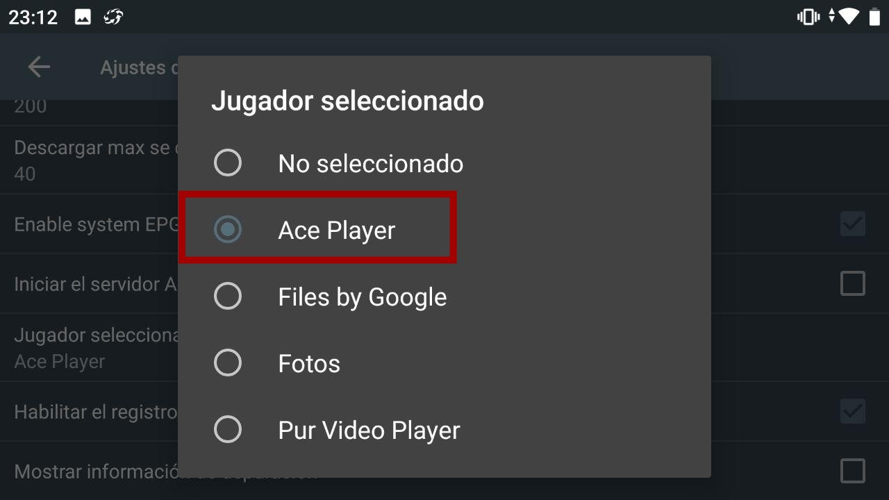 Aquí activamos Ace Player. Y con esto ya lo tenemos configurado.