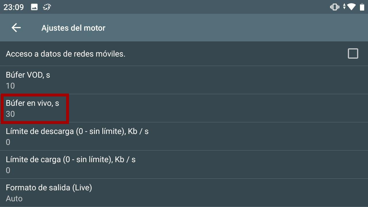 Aquí podeis ajustar el Buffer en vivo o dejarlo como está, depende de como os vaya. Si teneis muchos parones podeis probar a ir subiéndolo, 40,50 y hasta 60.