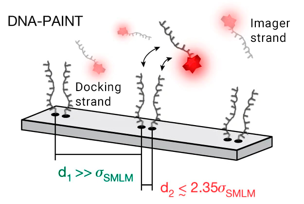 Сегодня группа биофизиков из лаборатории Юнгманна усовершенствовала свой метод, и теперь он обеспечивает точность локализации в 1–2 Å и субнанометровое разрешение с использованием обычного флуоресцентного микроскопа и стандартных реагентов DNA-PAINT! Сотрудники Юнгаманна разработали так называемый метод RESI — улучшение разрешения за счет последовательной визуализации (resolution enhancement by sequential imaging). Статья вышла 24 мая 2023 года в журнале Nature.