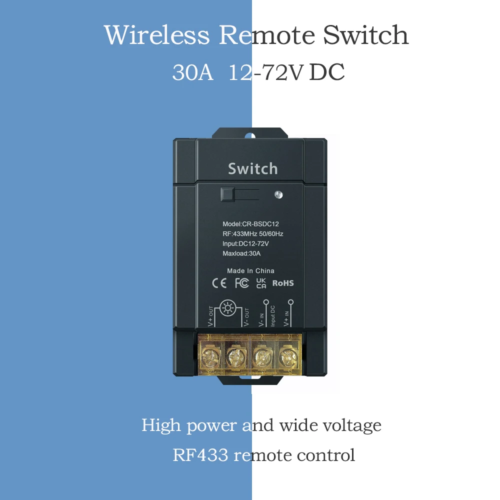 GHUsAjNKLTLooked for RF433 Remote Control Wireless Switch 30A DC 12-72V Long-distance 1000-1500M High power and wide voltage, widely used for a long time, but could not find it? Bring to your attention RF433 Remote Control Wireless Switch 30A DC 12-72V Long-distance 1000-1500M High power and wide voltage, widely used with the best price!