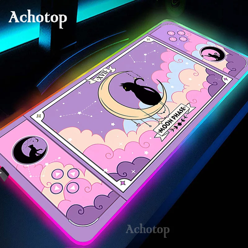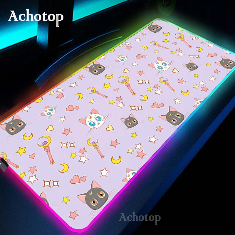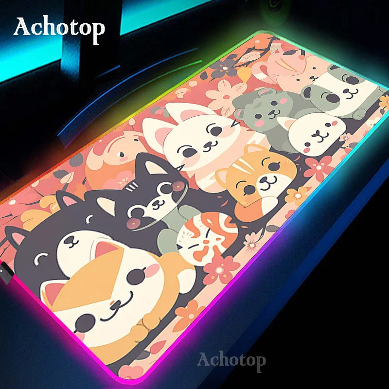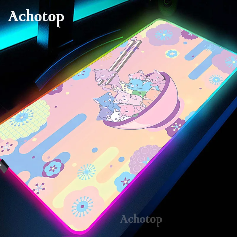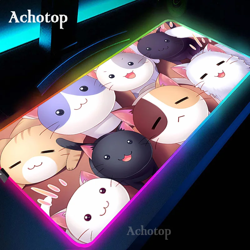 RGB Gaming Mouse Pad Kawaii Cat Computer Mouse Mat LED Gamer Rug Mousepad XXL Large Keyboard Carpet Pads Luminous Desk Mat - Купить с бесплатной доставкой