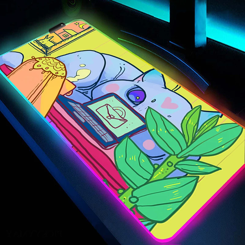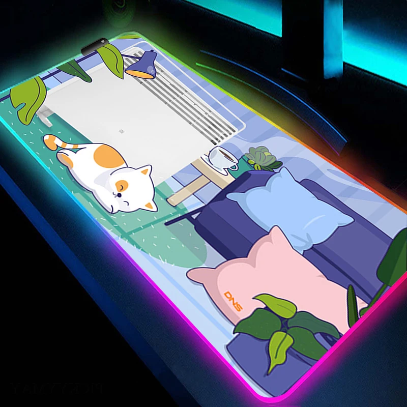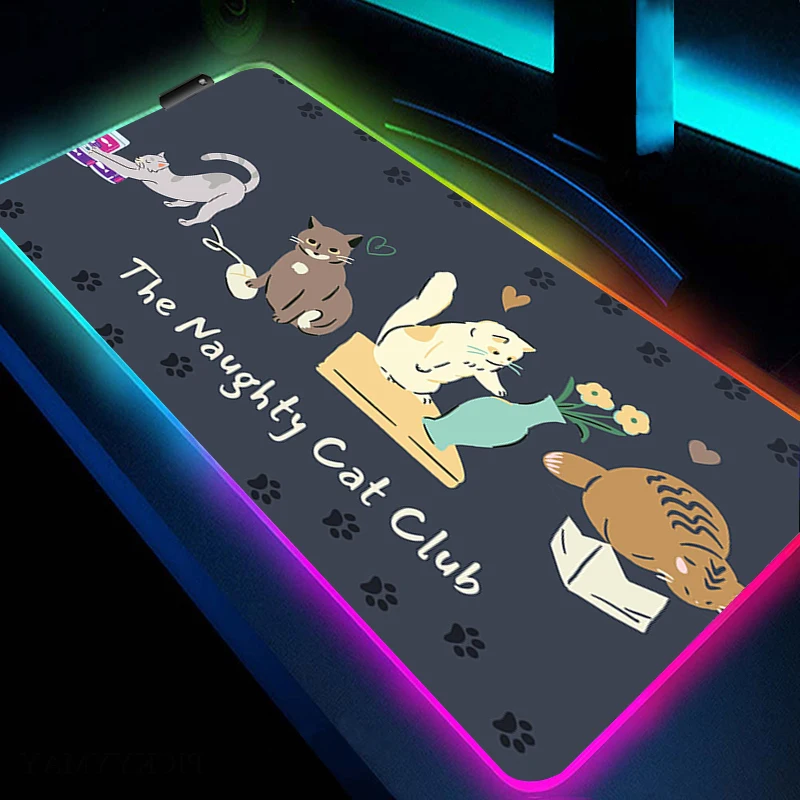 RGB Mouse Pad Large Gaming Mousepad Cute Cat Art HD Print Accessories Game Rubber Mouse Mat With Backlit LED Non-Slip Table Mat - Купить с бесплатной доставкой