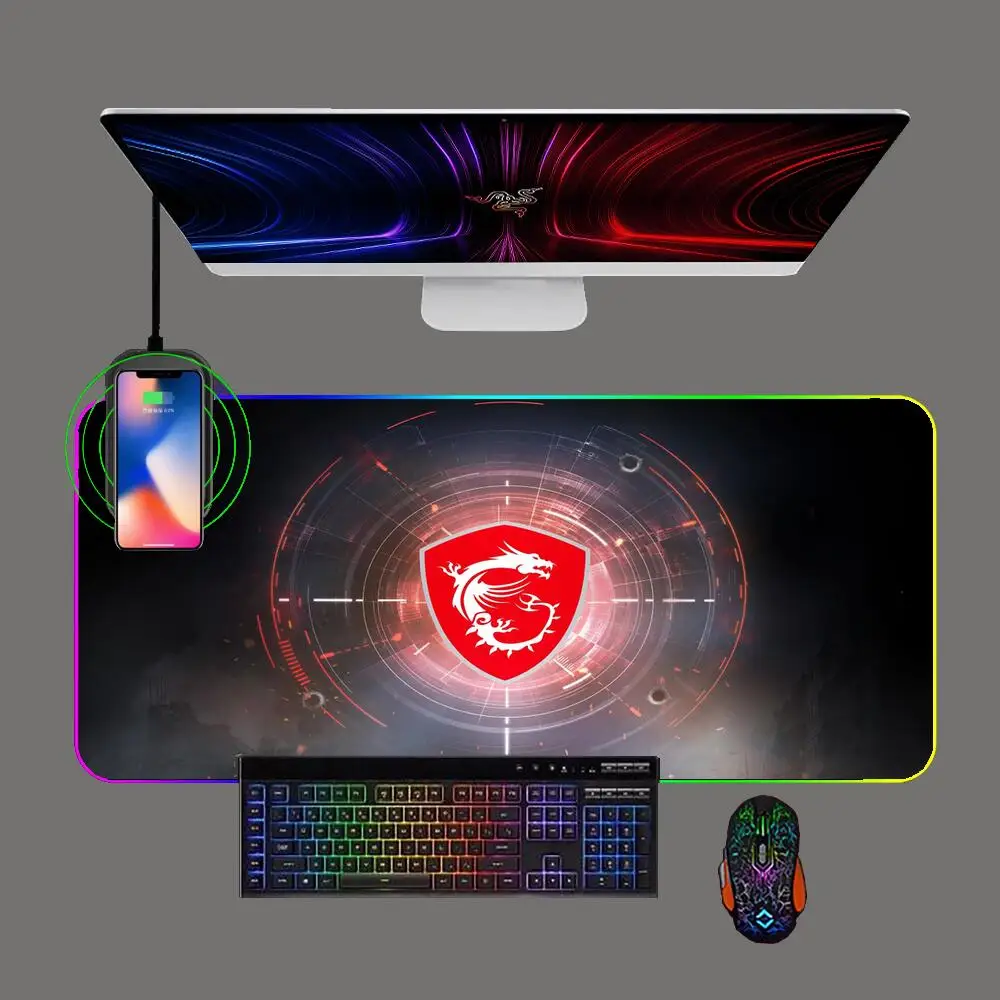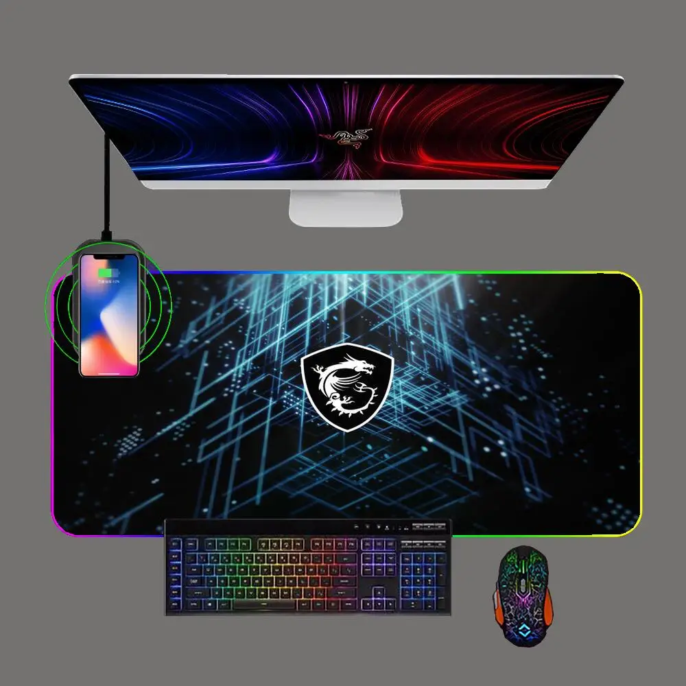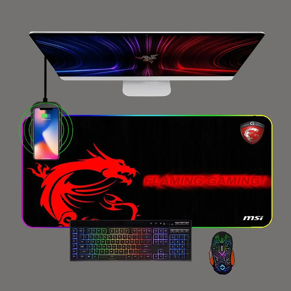 RGB Msi Phone Wireless Charging Gaming Large Mouse Pad LED Anime Keyboard Table Mat Notebook Computer Office Rubber Mousepad - Купить с бесплатной доставкой