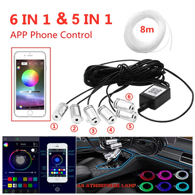 «RGB Neon LED Decorative Lamp Strips Interior Ambient Light by App Sound Control Fiber Optic RGB LED Atmosphere Car Light» по лучшей цене на рынке! Всего за 12$ (1140рублей)