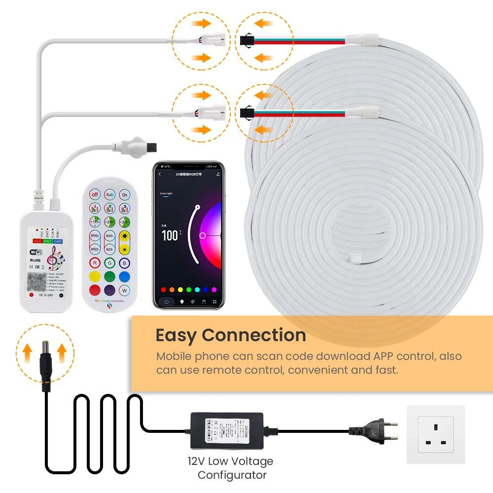 RGB Neon Strip WiFi Bluetooth Control Neon Rope Lamp 12V 96Leds/m Waterproof Ribbon Tape WS2811 IC Full Color Sign EU US Plug - Купить с бесплатной доставкой