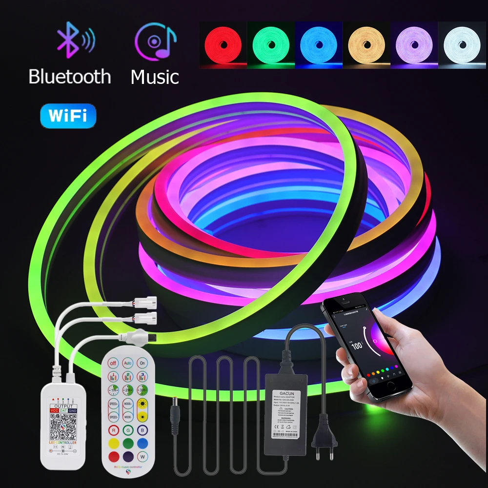 ByfnwECXCЗдесь вы сможете купить RGB Neon Strip WiFi Bluetooth Control Neon Rope Lamp 12V 96Leds/m Waterproof Ribbon Tape WS2811 IC Full Color Sign EU US Plug с бесплатной доставкой до вашего почтового отделения.