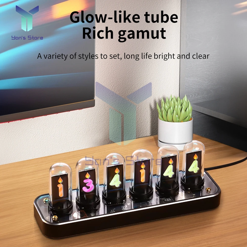 RGB Nixie Clock Digital Desktop Digit Tabl Creative Clock Decoration Exquisite Ornaments Retro Electronic Analog Glow Tube Clock - Купить с бесплатной доставкой