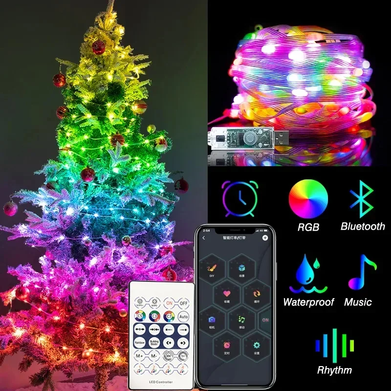 lFLodWoEHere you can buy RGB Smart Bluetooth Control USB LED String Lights Outdoor App Remote Control led Garland Fairy Lamp Christmas Tree Decoration with free delivery to your post office.