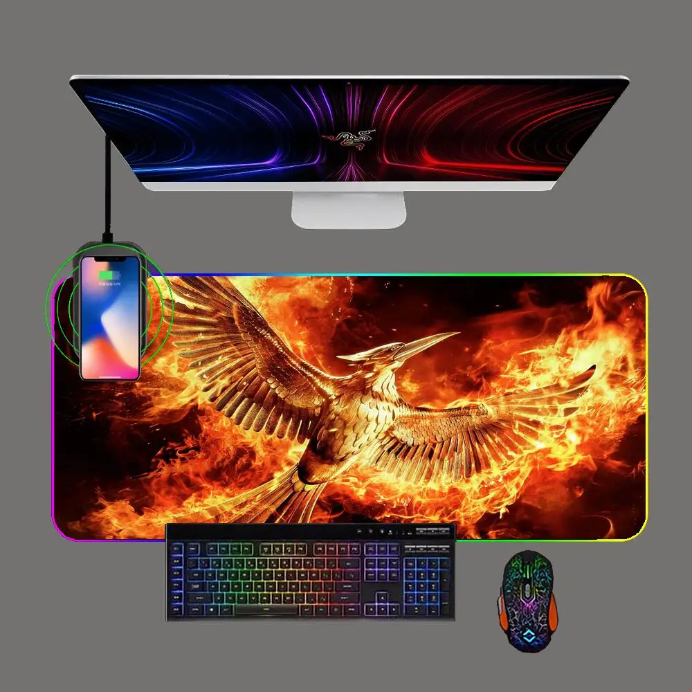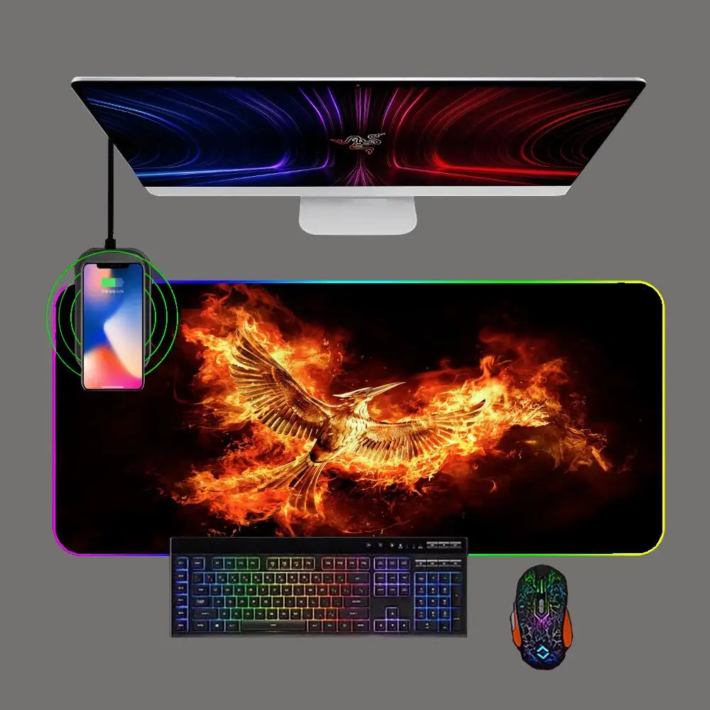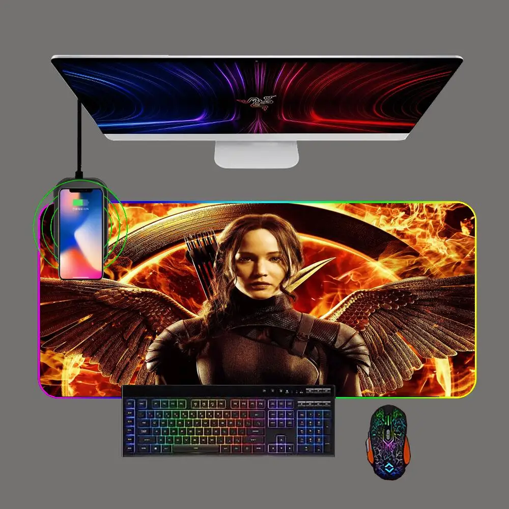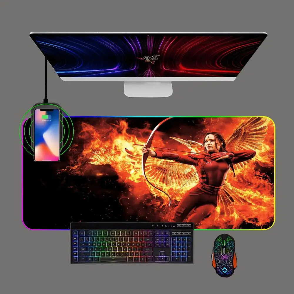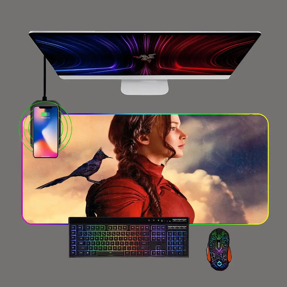 RGB The Hunger Games Mockingjay Wireless Charging Mouse Pad LED Backlit Anime Keyboard Mousepad Computer Office Mat for Cs/lol - Купить с бесплатной доставкой