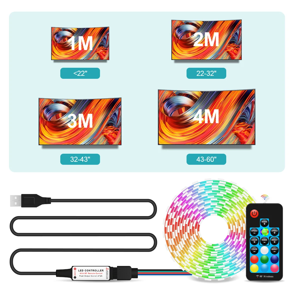RGBW / RGBWW USB LED Strip Light 5050 RF Remote controller 50CM 1M 2M 3M 4M for PC TV Background Lighting Flexible light DC5V - Купить с бесплатной доставкой