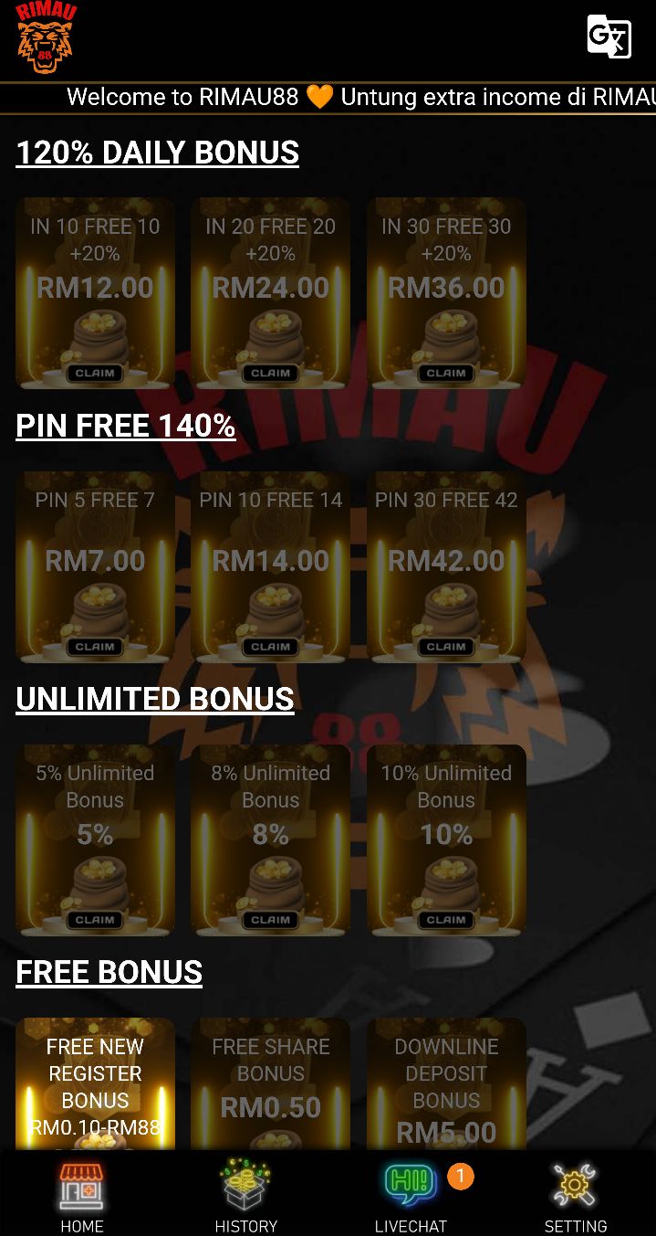 Daily bonus sehingga ๐ญ๐ฎ๐ฌ%