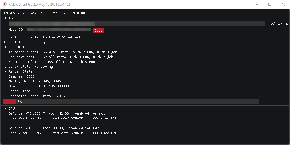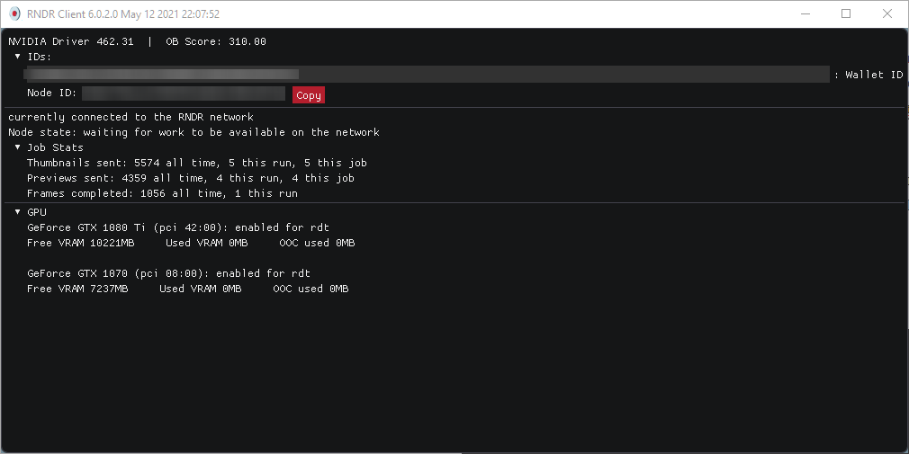 По NODE ID можно отслеживать статистику рендера и начислений RNDR токенов. Статистика отслеживается через бота на канале RNDR в соцсети Slack.