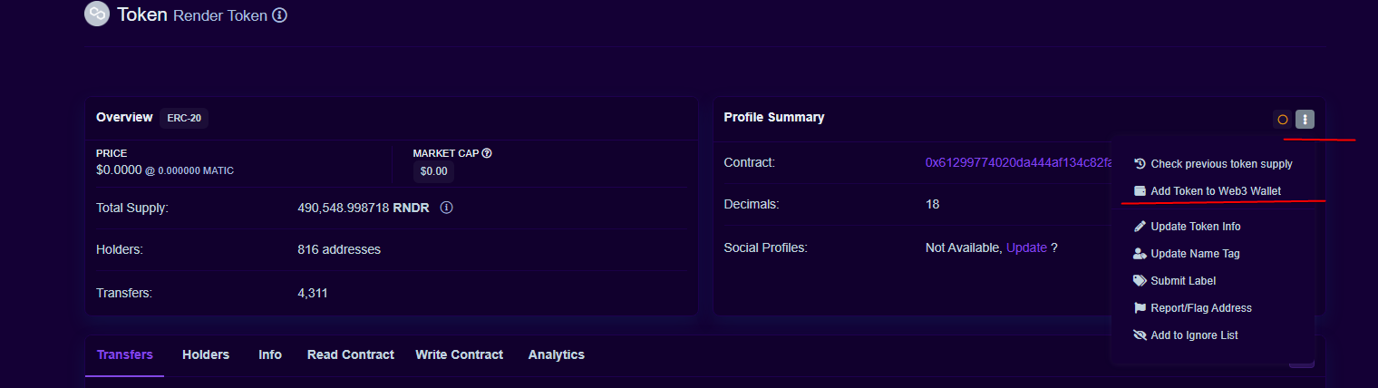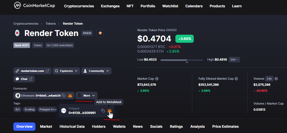 Биржи не принимают RNDR токен по этой сети. Но есть временный выход через Matic токен (НЕ АКТУАЛЬНЫЙ).