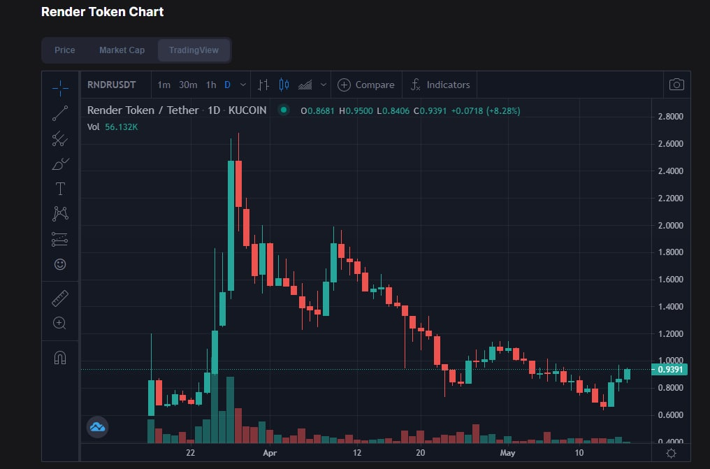 Валюта в сети RNDR (ERC-20/Polygon). Токены покупаются артистами(те кто отправляет на просчет свои задания), и токены выплачиваются операторам (те кто содержит свои GPU ноды для просчета заданий артистов). Токеномика.