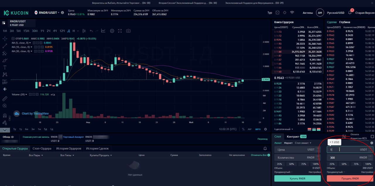 далее уже либо выводим либо покупаем заново RNDR токены и храним на бирже до лучших времен.