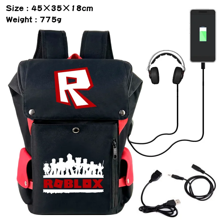 ROBLOX Peripheral Student Backpack Cartoon USB Charging Printing Casual Computer Bag Travel Bag Zipper Large Capacity Bucket Bag - Купить с бесплатной доставкой