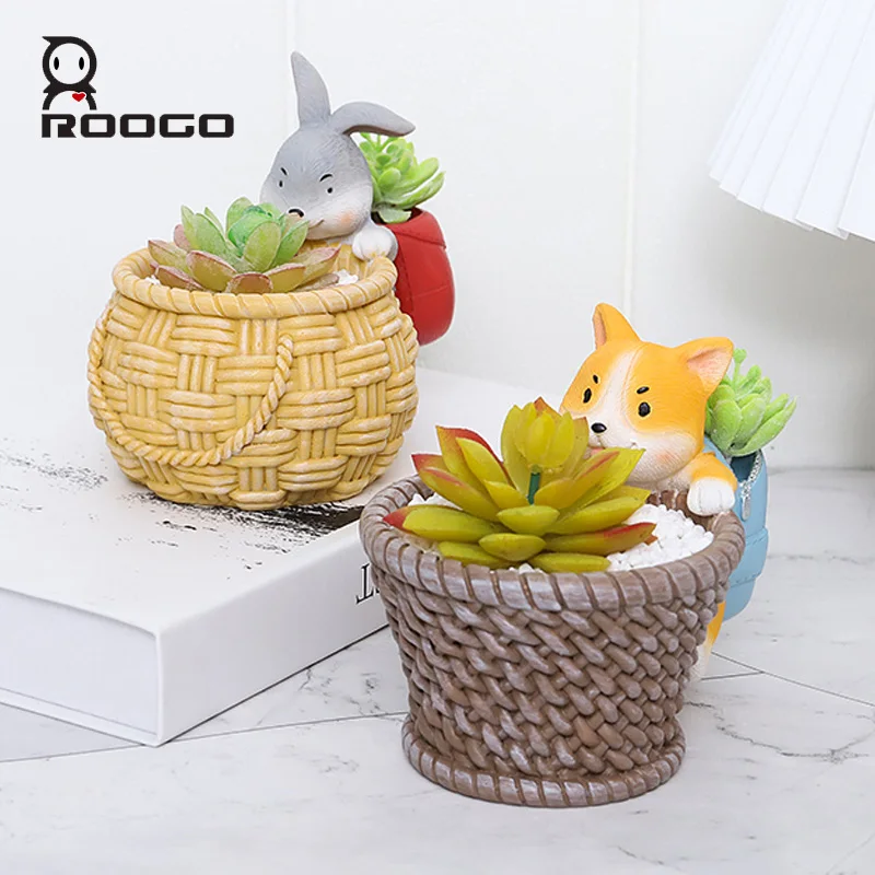 «ROOGO Cute Rabbit Dog Flower Pots Rustic Plant Container Creative Resin Succulent Planter Gardening Pots for Indoor Outdoor» по лучшей цене на рынке! Всего за 14$ (1330рублей)