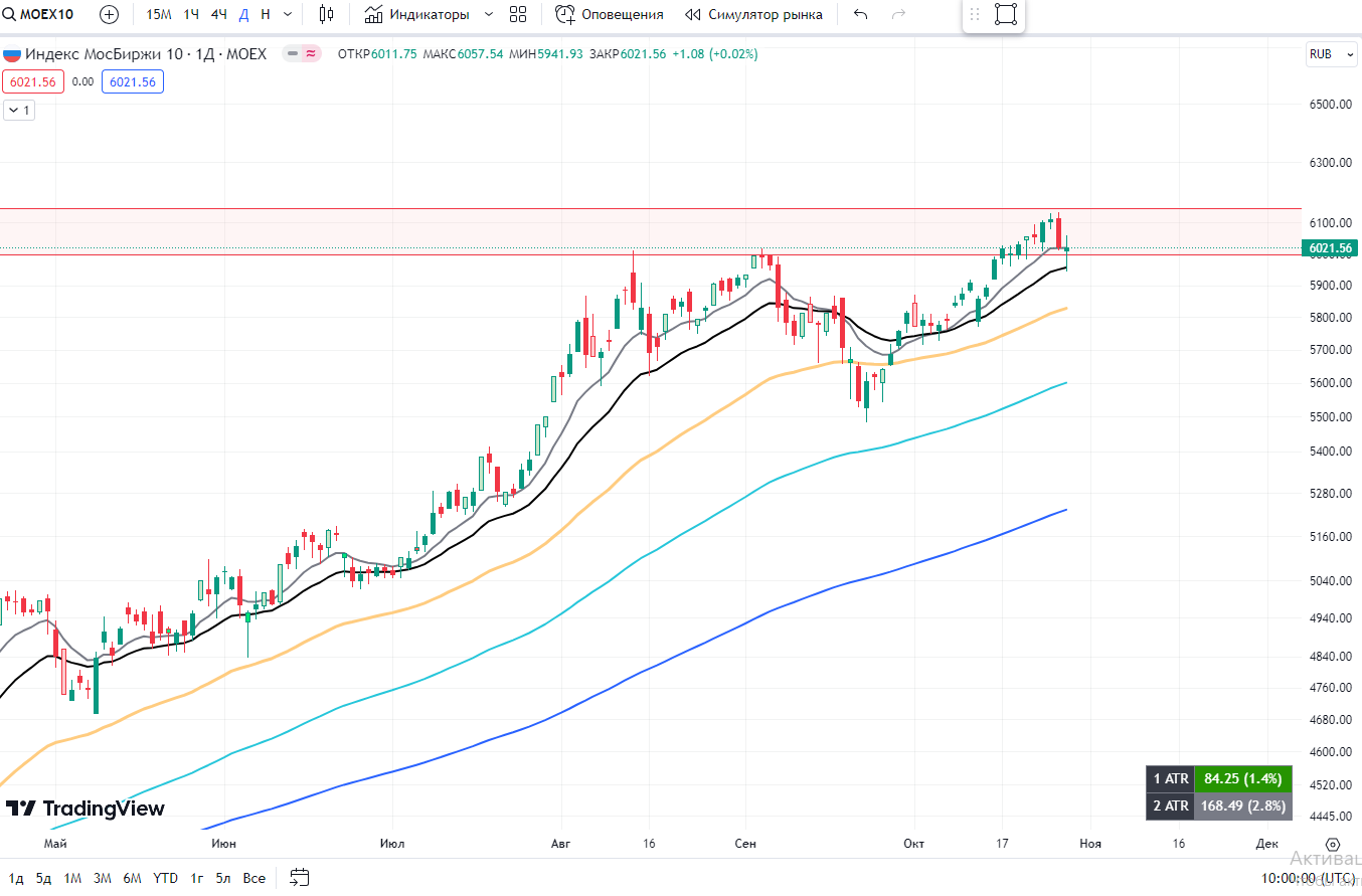 📌MOEX10 - топ 10 компаний по капитализации. Всю предыдущую неделю тяжи удерживали индекс. Удержали в пятничное закрытие.
