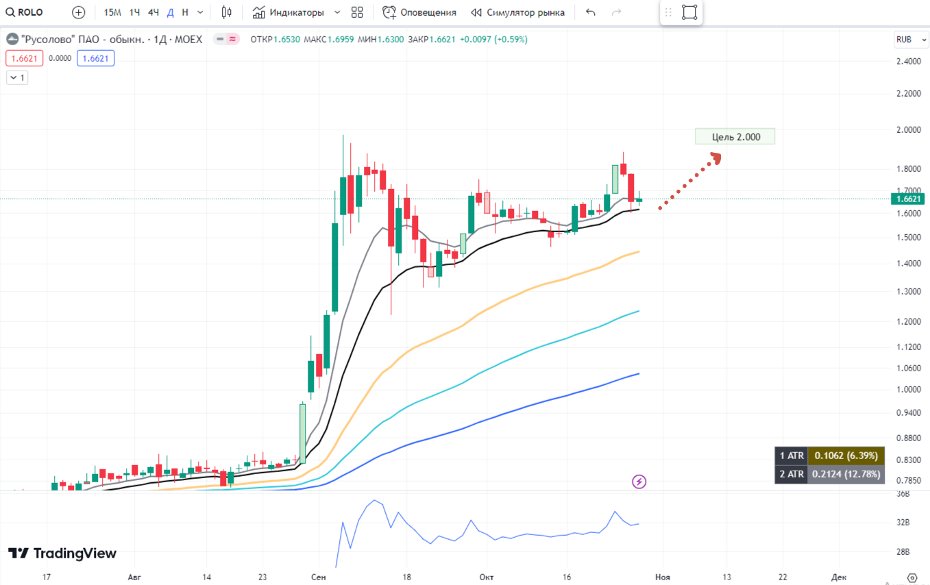 чаще всего показывает направление общего рынка.Примечательно, что во время падения, почти не сдвинулся с места. Это позитивный сигнал