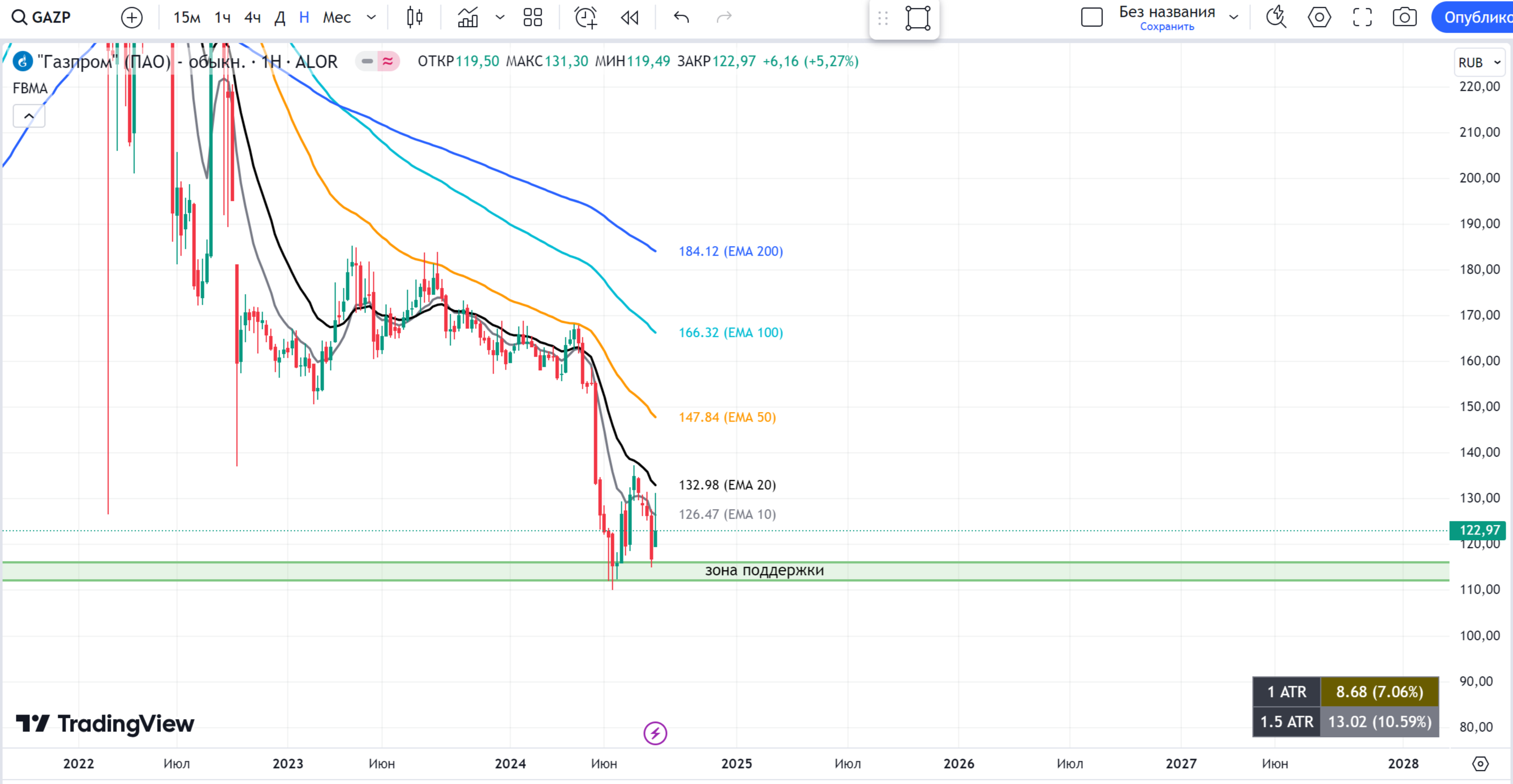Если интерес к бумаге продолжится и она пробьет скользящую среднюю ЕМА 20, будем рассматривать её для добавления в портфель.