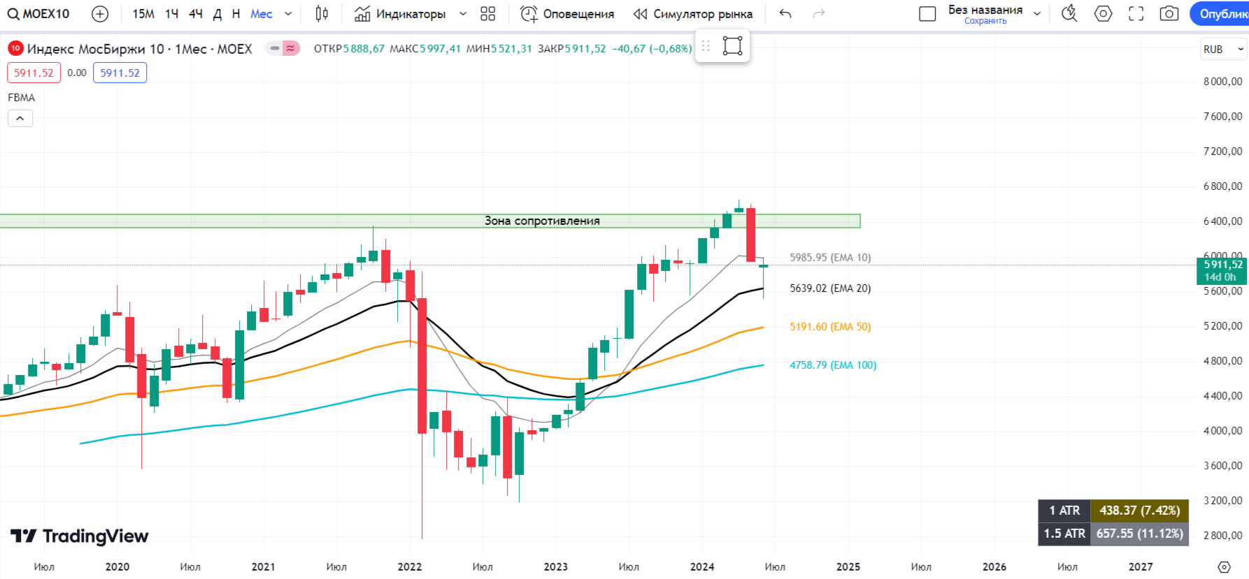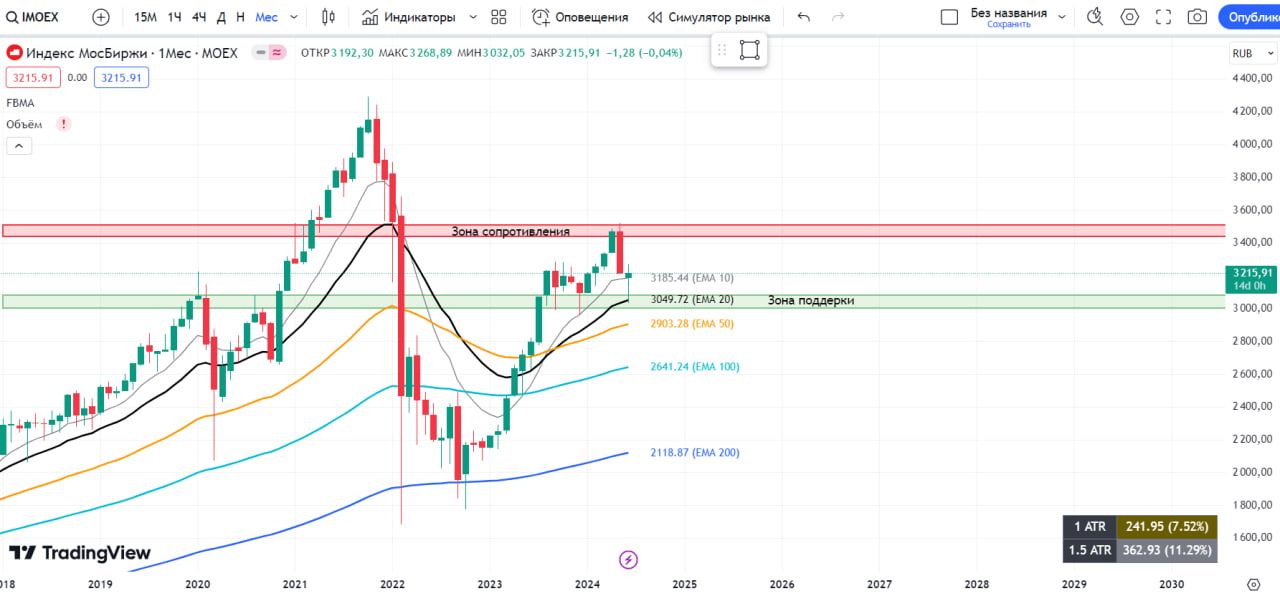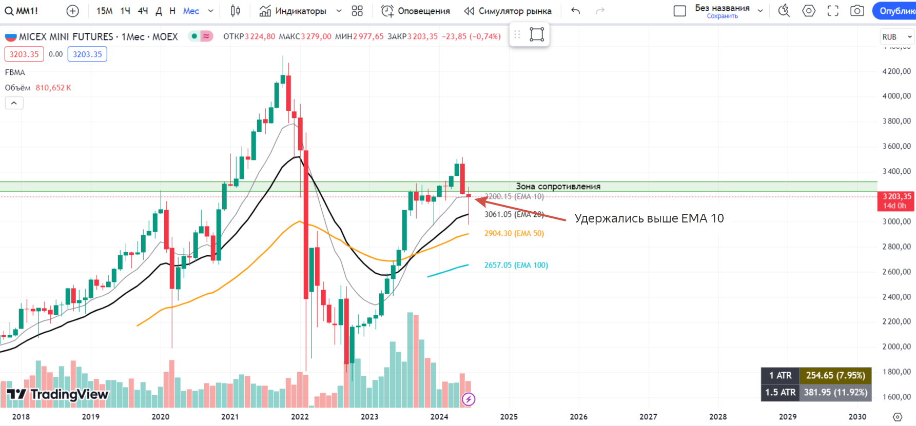 🔹 Рынок мужественно выдержал панику от санкционного давления, отыграв практически всю просадку и закрывшись выше ЕМА 10;