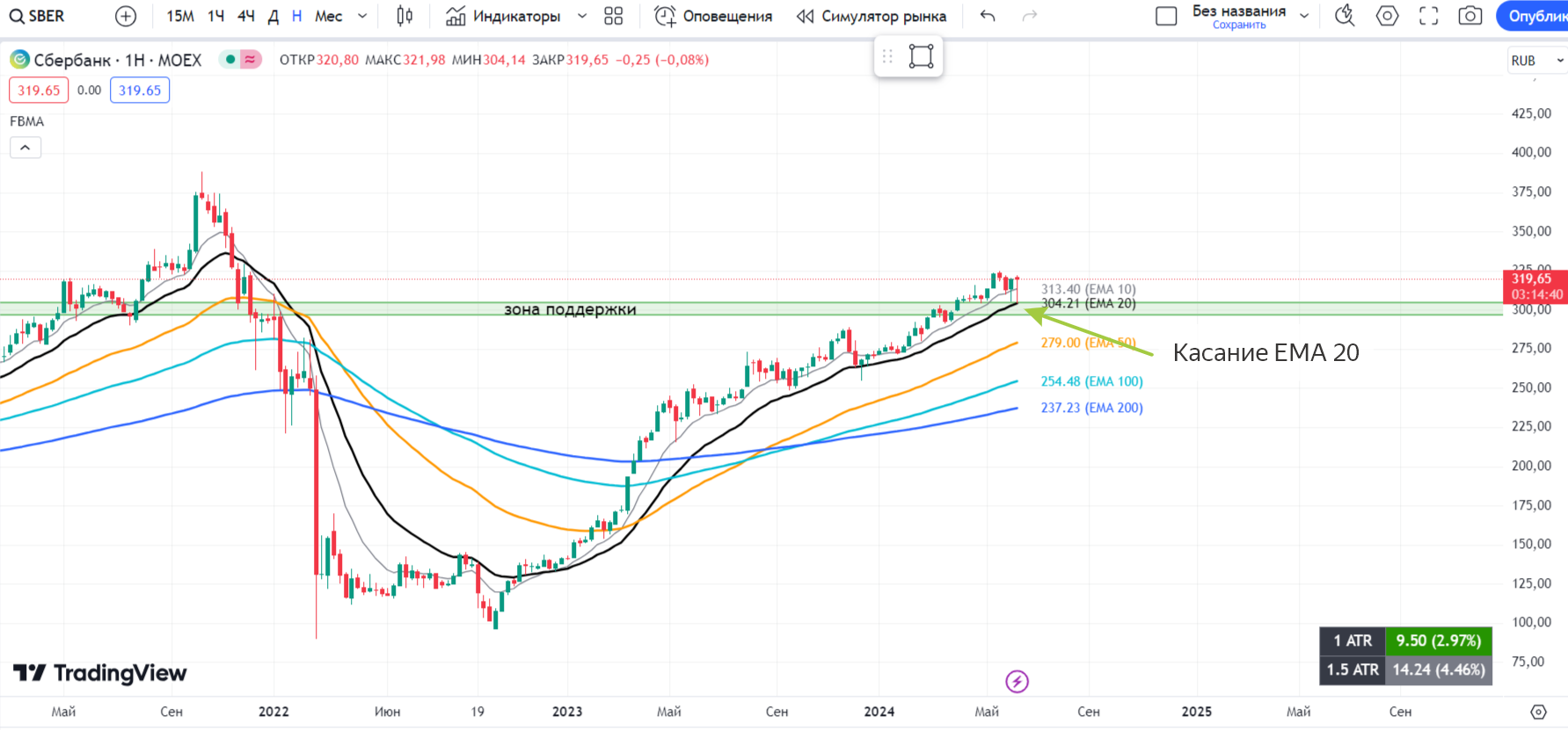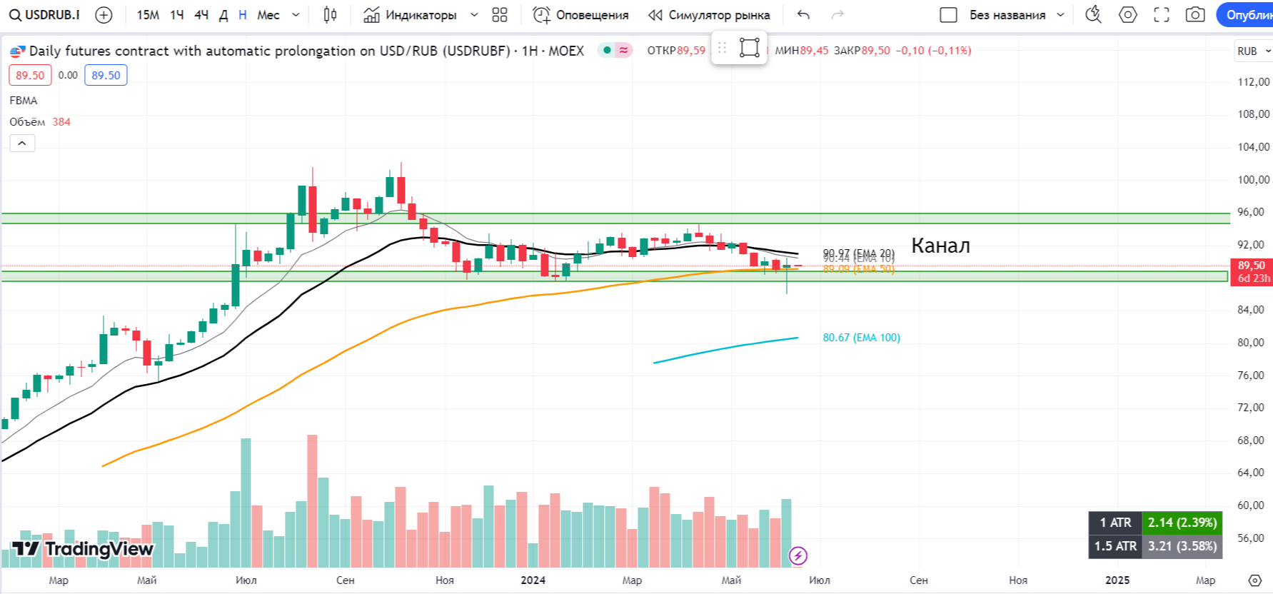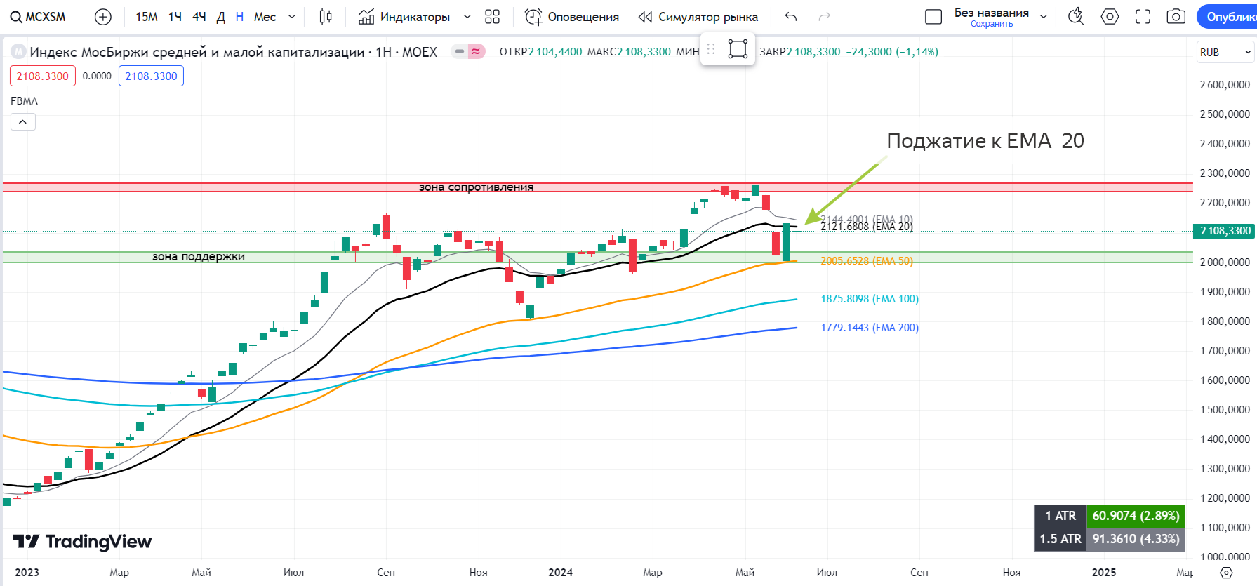 🔹 Рынок мужественно выдержал панику от санкционного давления, отыграв практически всю просадку и закрывшись выше ЕМА 10;
