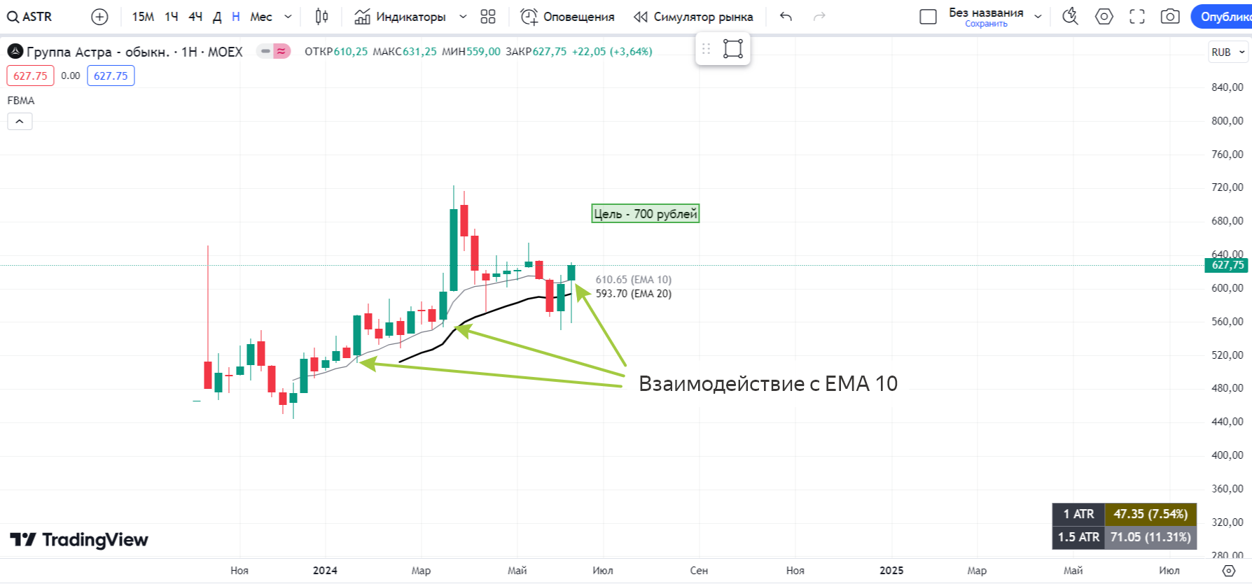 $ASTR, совсем недавно писали про бумагу. Неделю она закрыла выше скользящей средней, не смотря на сильную волатильность. Фундаментально сильная компания, которая имеет место в портфеле с среднесрочной целью - 700 рублей за акцию.