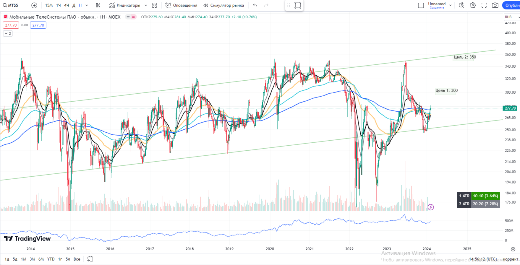 $MTSS уже писали о бумаге ранее. МТС снова дает нам возможность зайти в сделки. Отличный отскок от канала и мы уже выше ЕМА 200 на недельке. Цели на скриншоте актуальны.