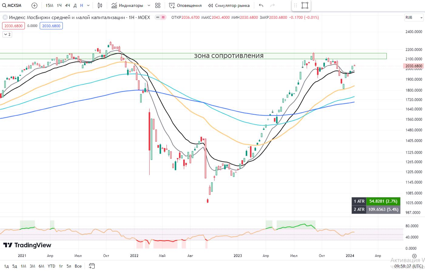 📌 MCXSM - индекс компаний малой капитализации. Маленькие компании замерли. Игроки в раздумьях. Продавать или нет? Недельные котировки почти без изменений.