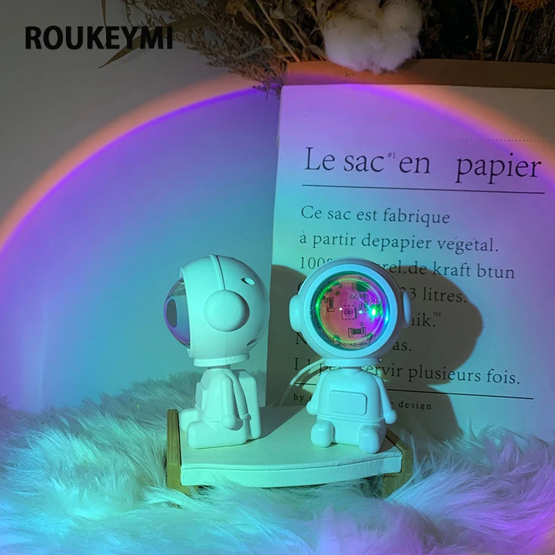 "ROUKEYMI Robot Sunset Atmosphere Lamp Photograph Bedroom Desk Led Night Desktop Decoration Astronaut Projector Mini Sunset Light" * Buy Now Just For 17$