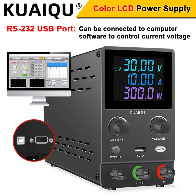 BlQycpzOvHere you can buy RS232 USB Port Programmable DC Power Supply 30V 12A 12V 24V Adjustable Source Color LCD Lab Switch Voltage Regulator Stabilizer with free delivery to your post office.