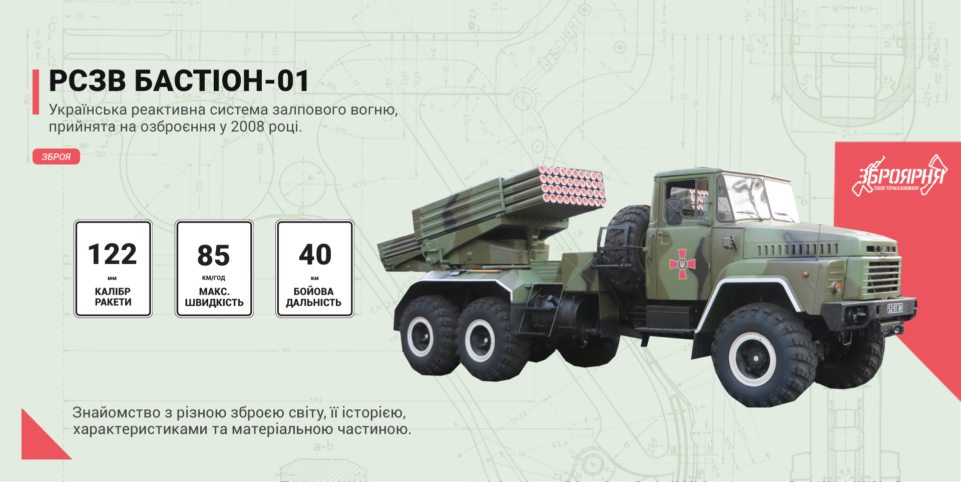 РСЗВ Бастіон-01 (Bastion-01) призначений для знищення військової техніки та живої сили противника, артилерійських та мінометних батарей, а також вогневих укріплених споруд та бліндажів.