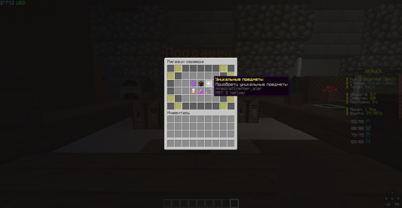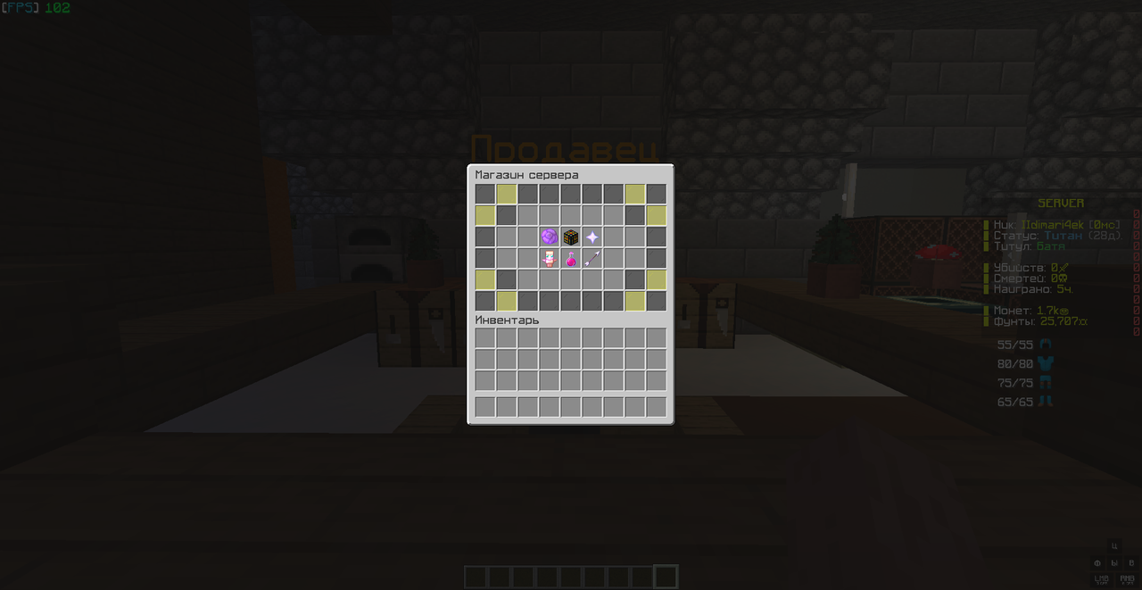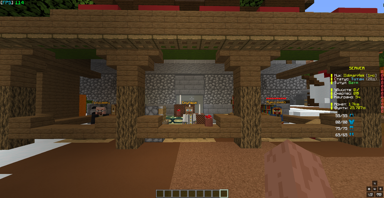 В сборке есть уникальный магазин с крутыми предметами для PvP и PvE, скупщик и аукционер.