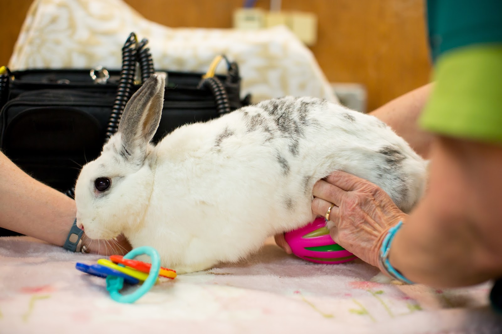 Mary: To try to get the gas out, yeah. And so one thing you can do is belly massage. I will show you with this bunny. She's never had belly massage before. So we'll take her out of this.
