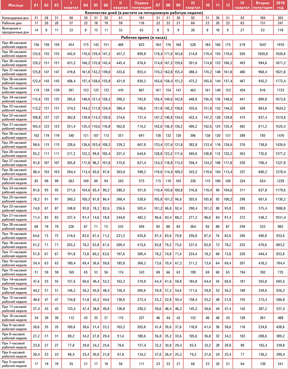 Рабочая норма 2019
