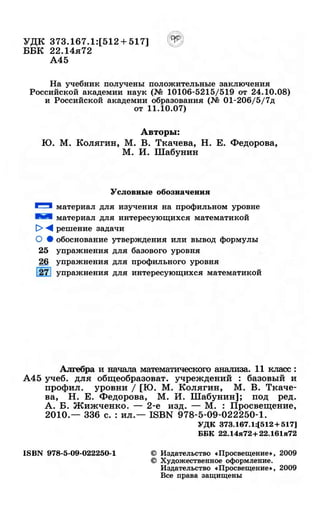Рабочая программа 11 класс алгебра колягин