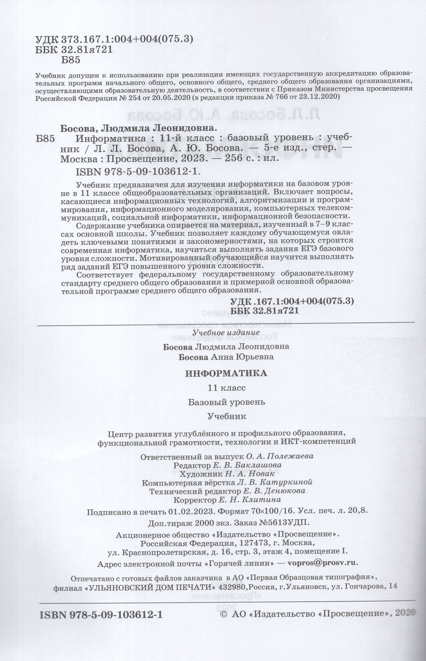 Рабочая программа по информатике 11 класс босова
