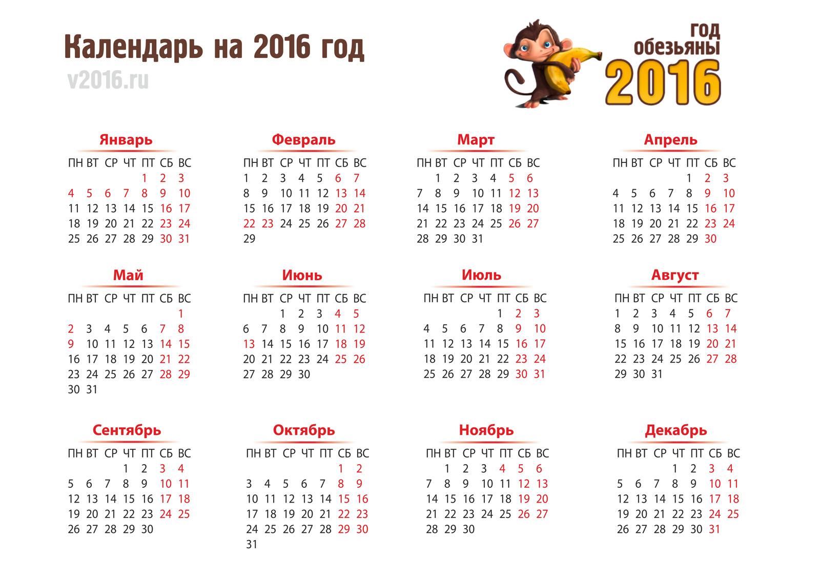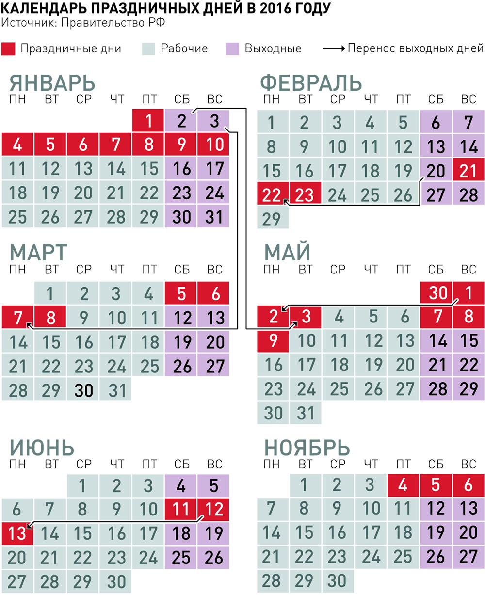 Рабочие дни 2016 год