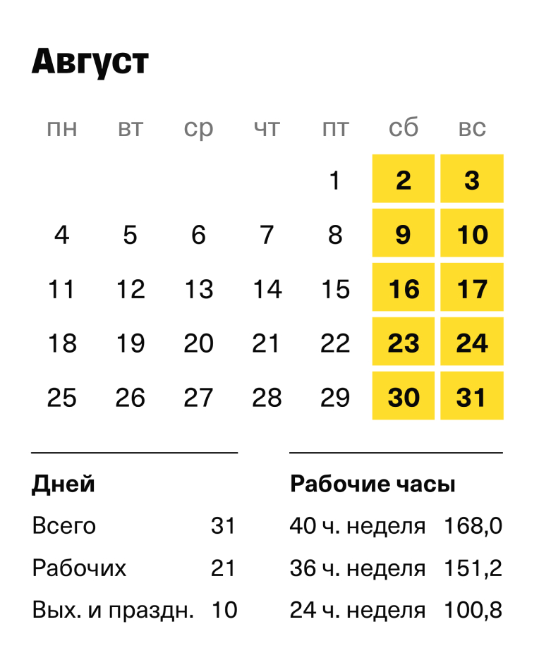 Рабочие дни август 20 114 фото