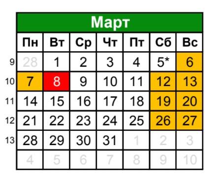 Рабочие дни март 22 года
