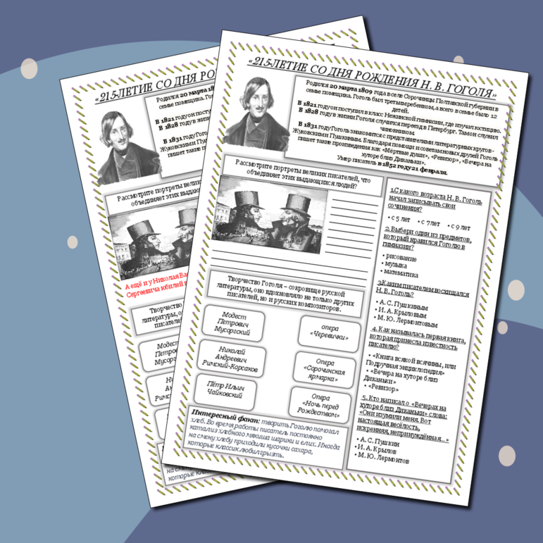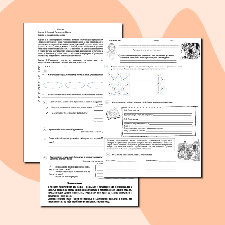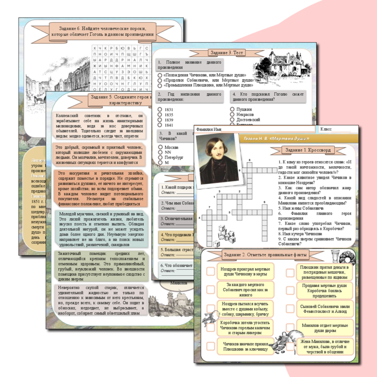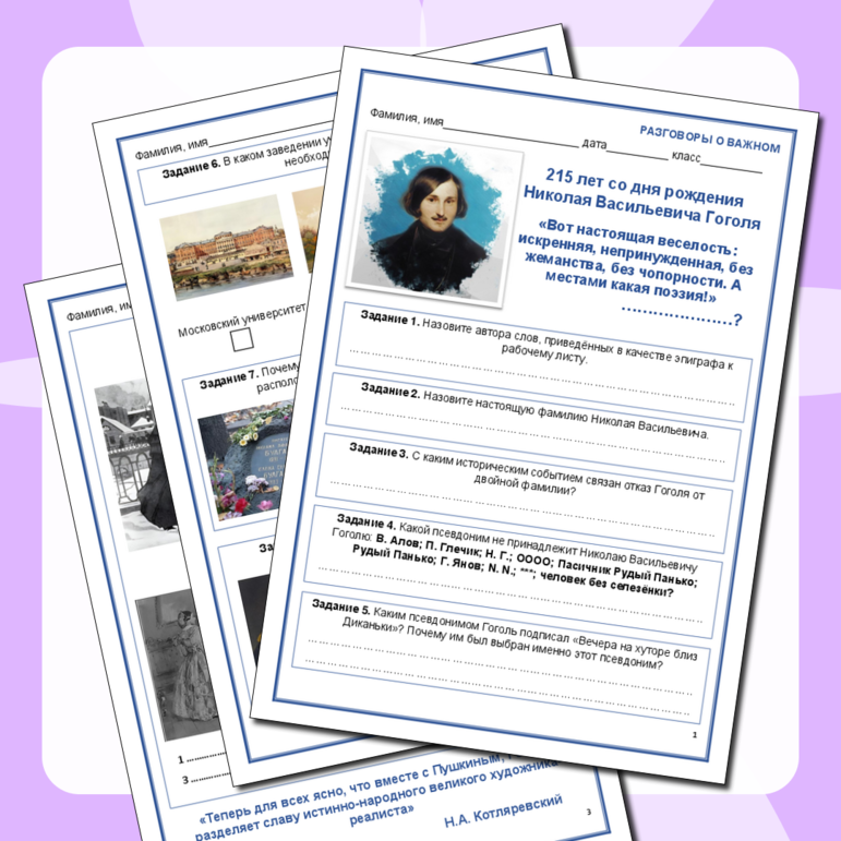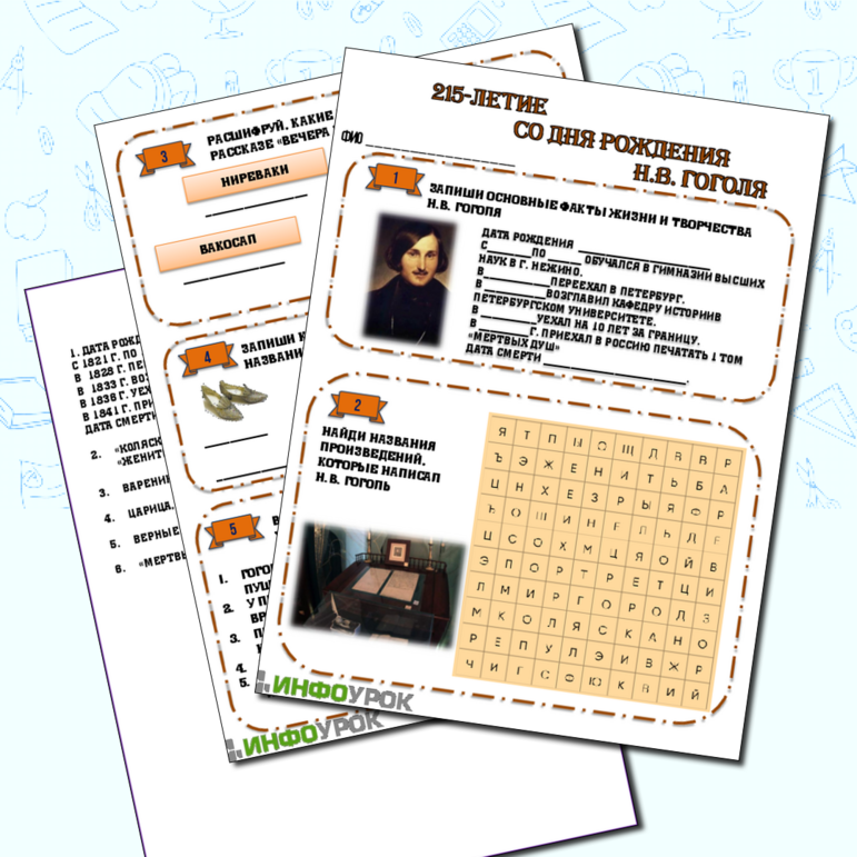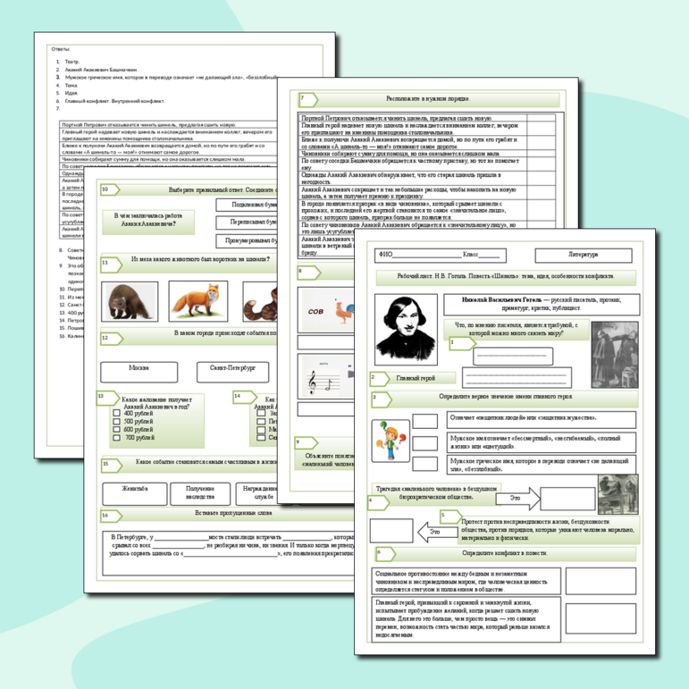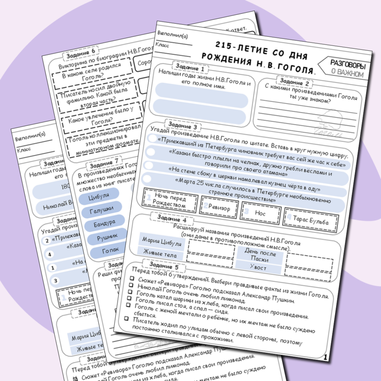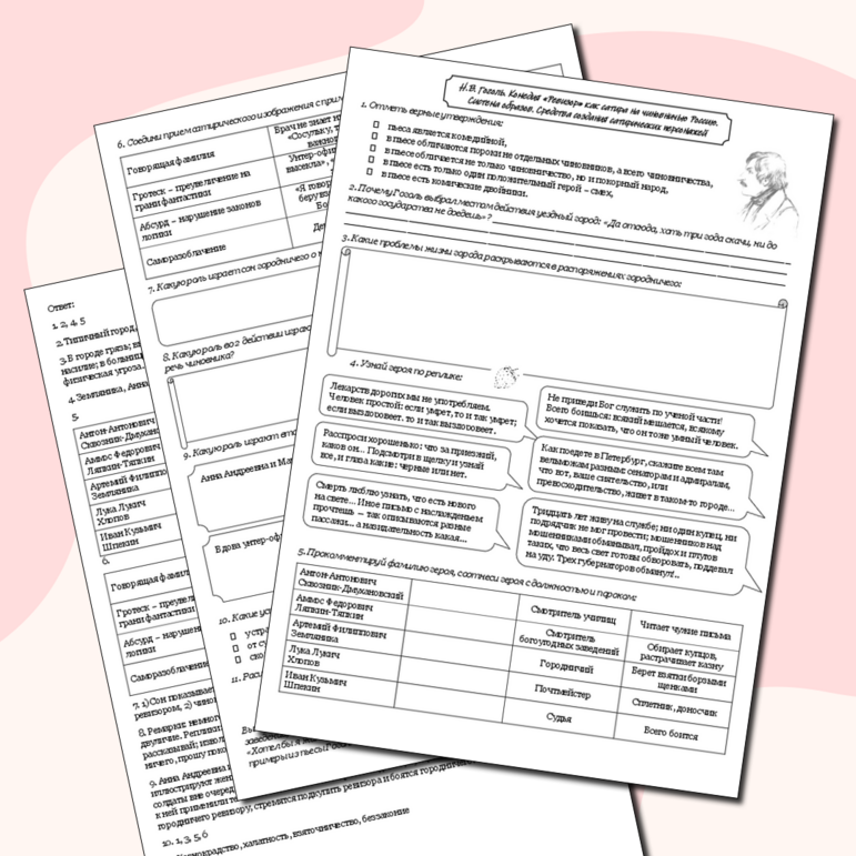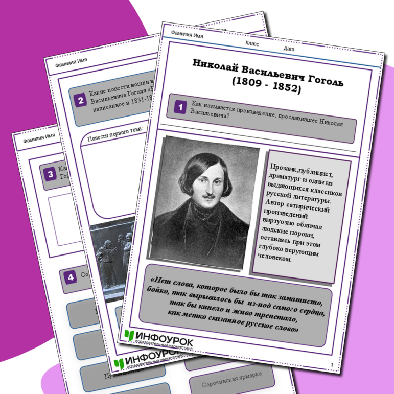 Рабочие листы про гоголя
