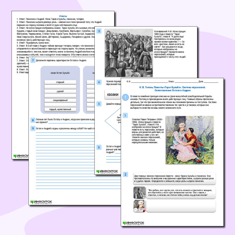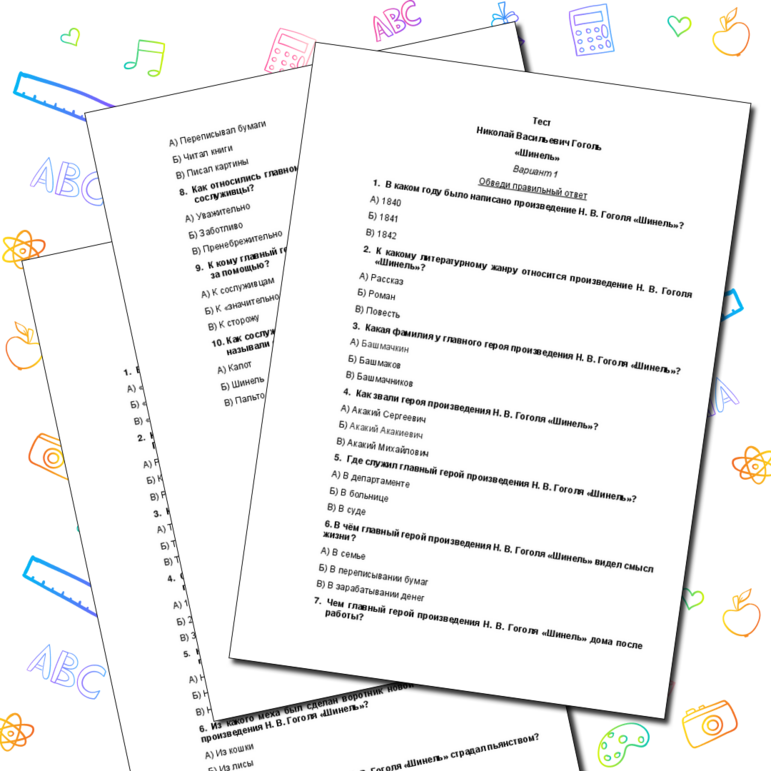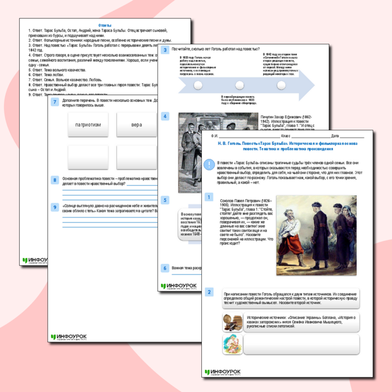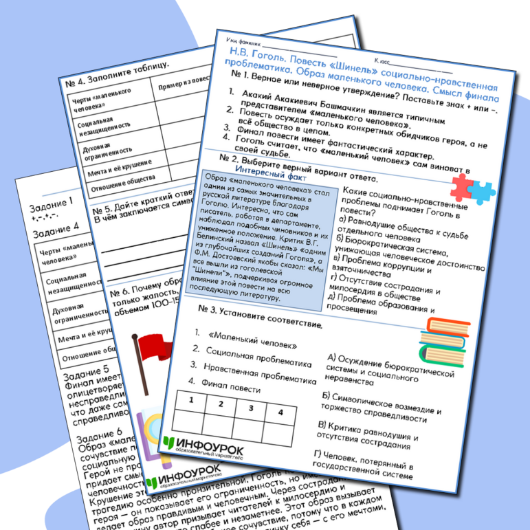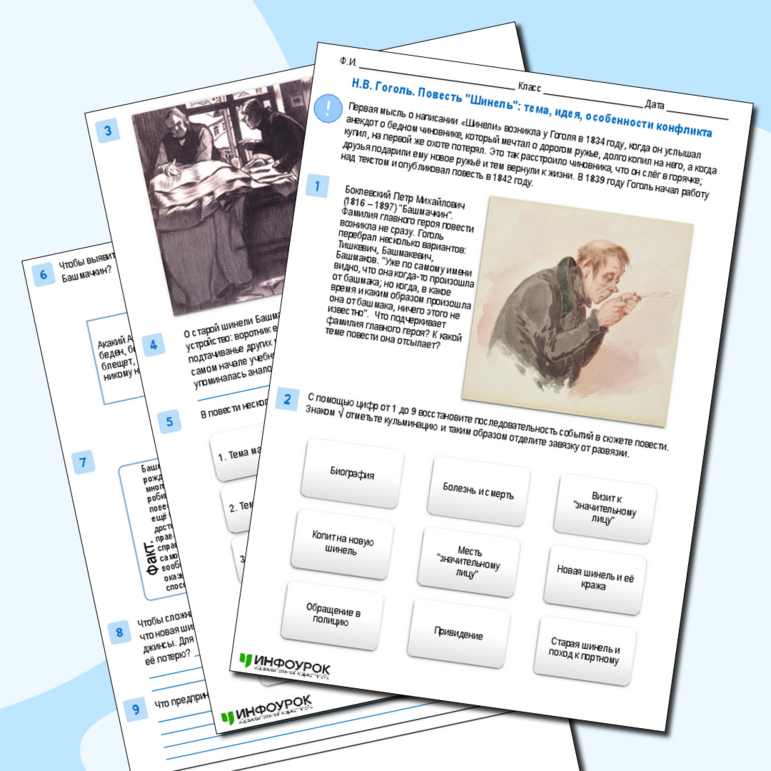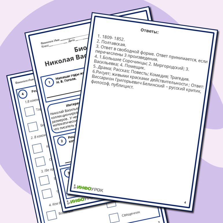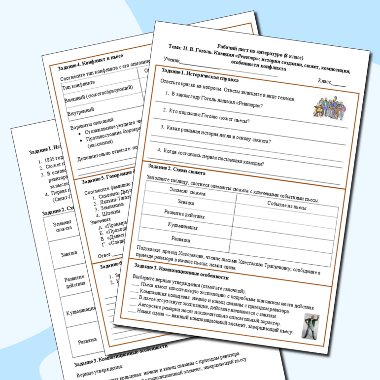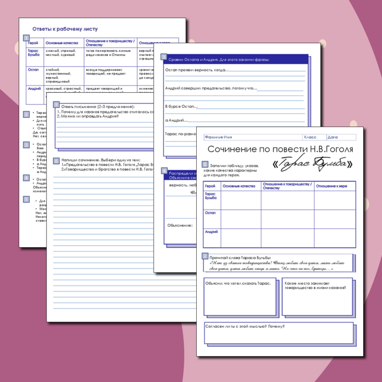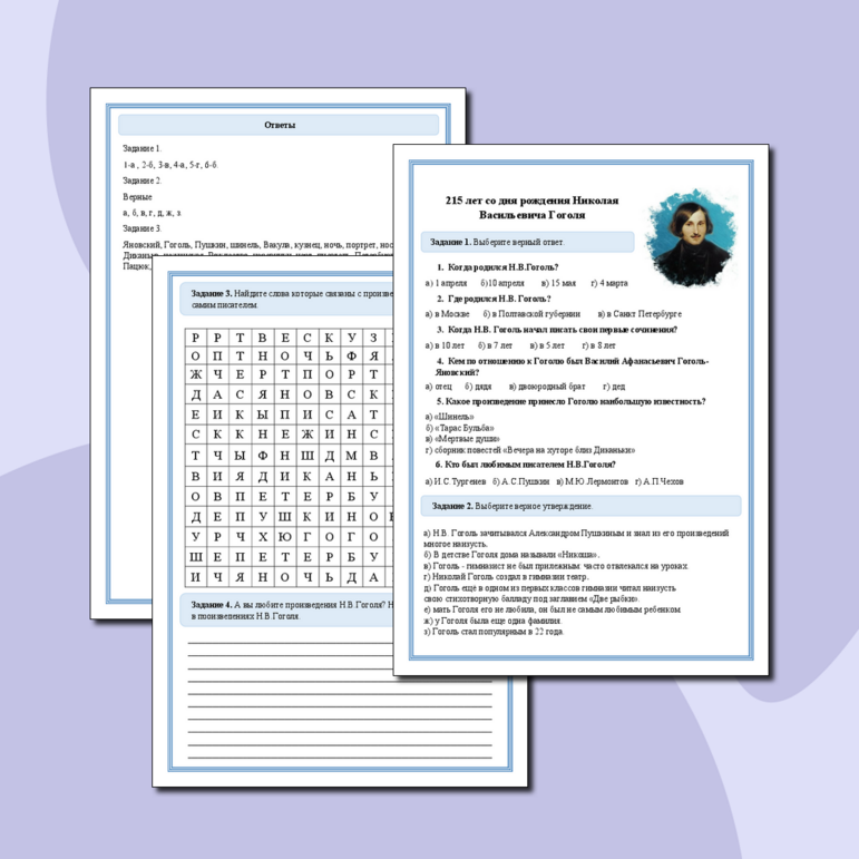 Рабочие листы про гоголя