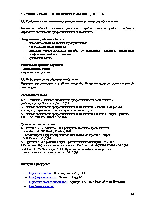 Рабочие программы правовое регулирование