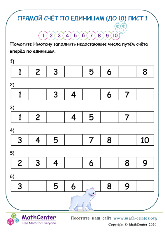 Рабочий лист числа 10