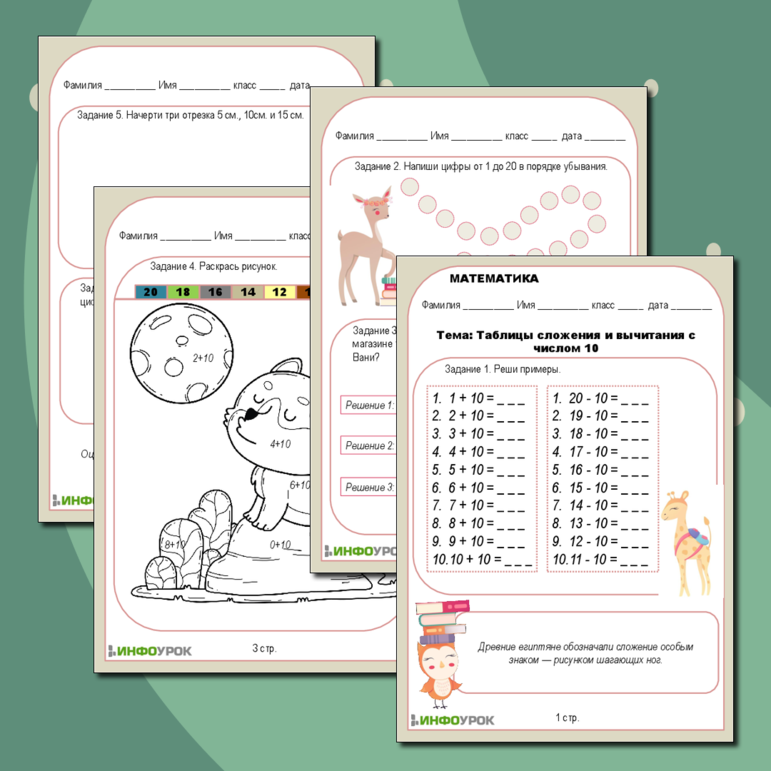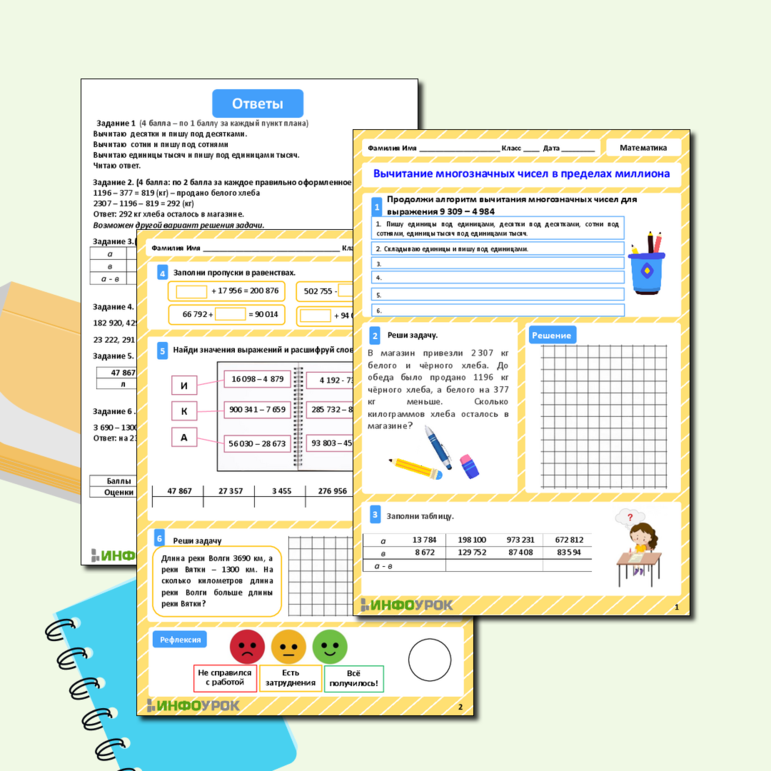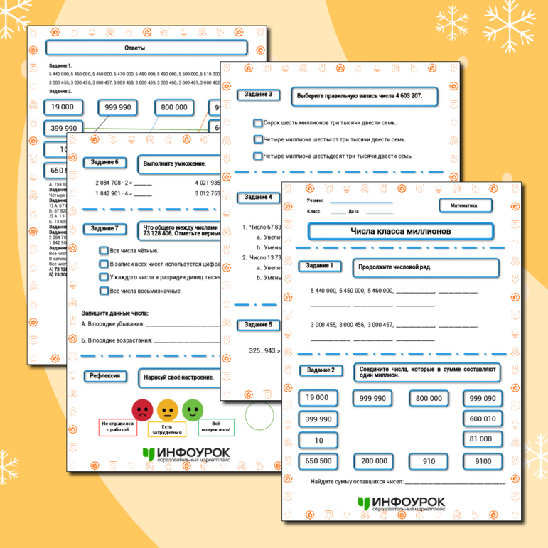 Рабочий лист числа в пределах миллиона