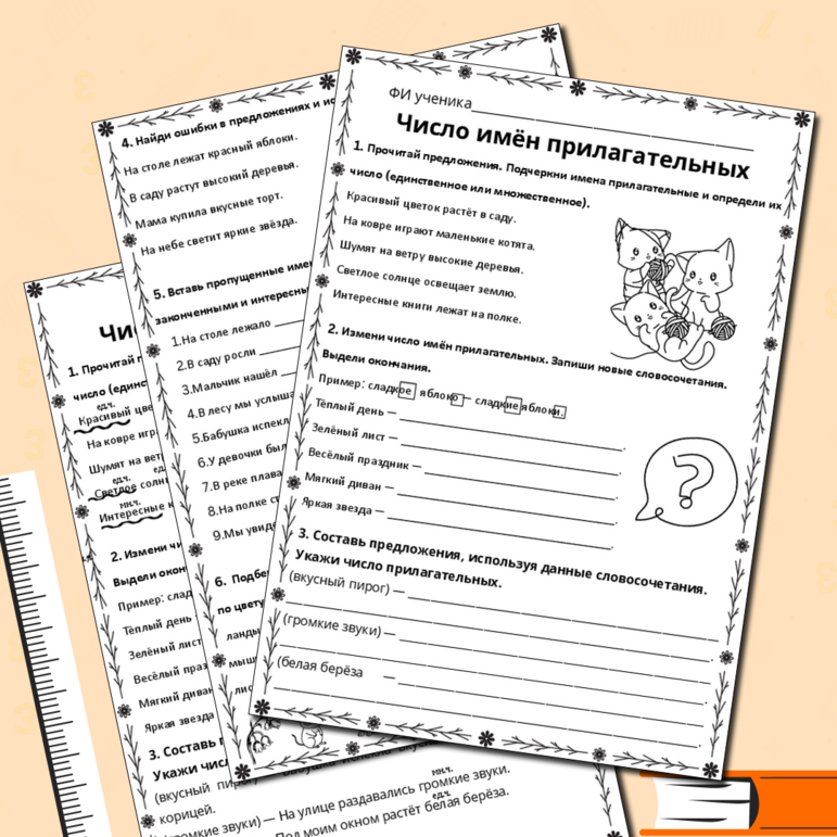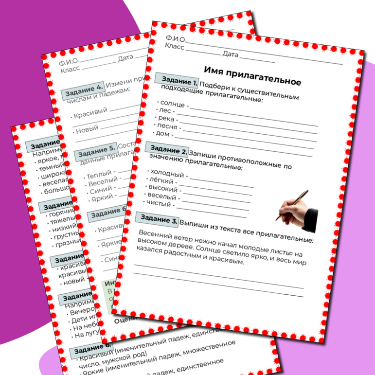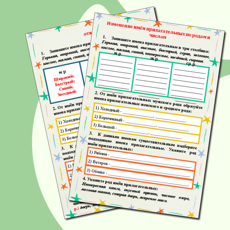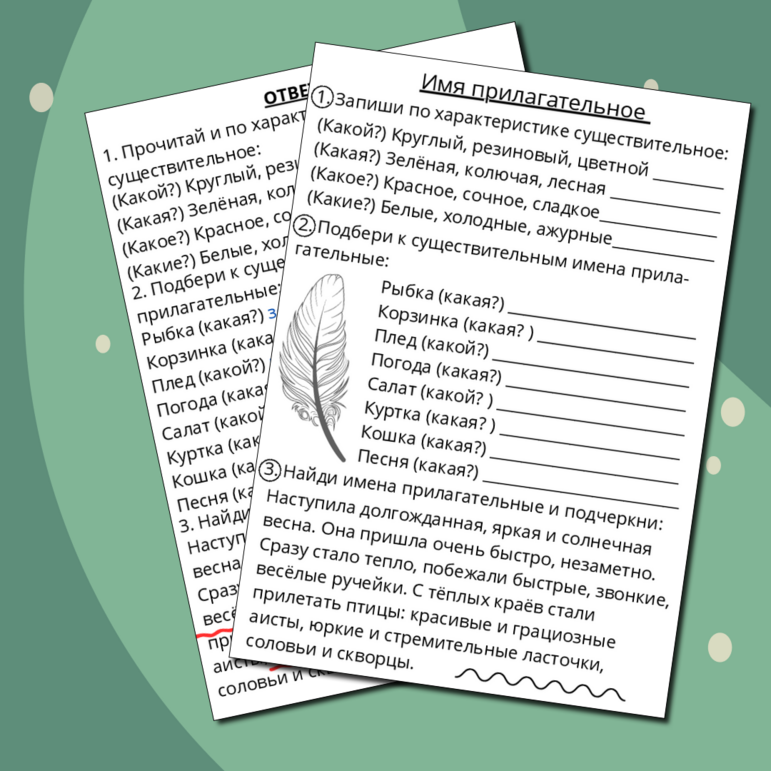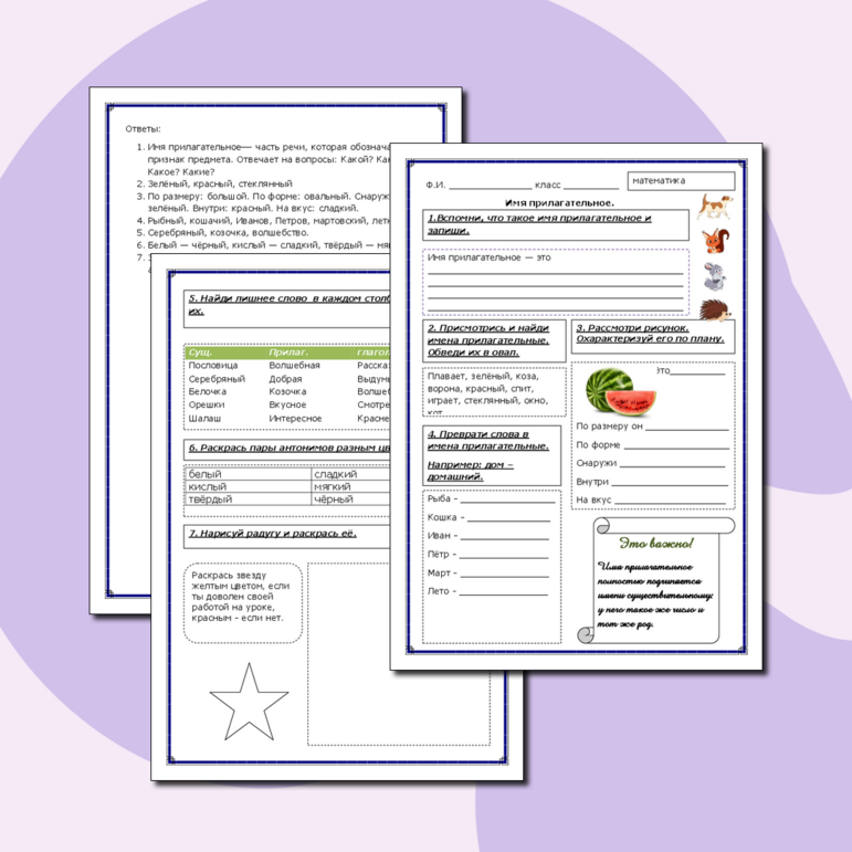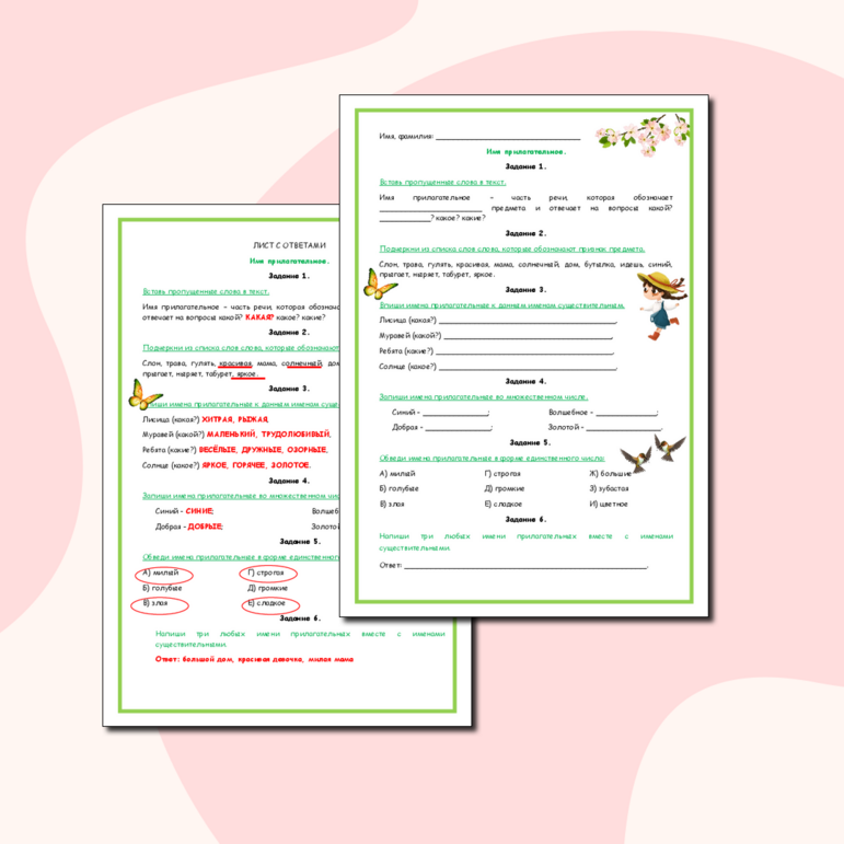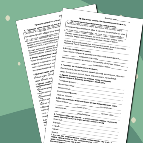 Рабочий лист число прилагательных 2 класс