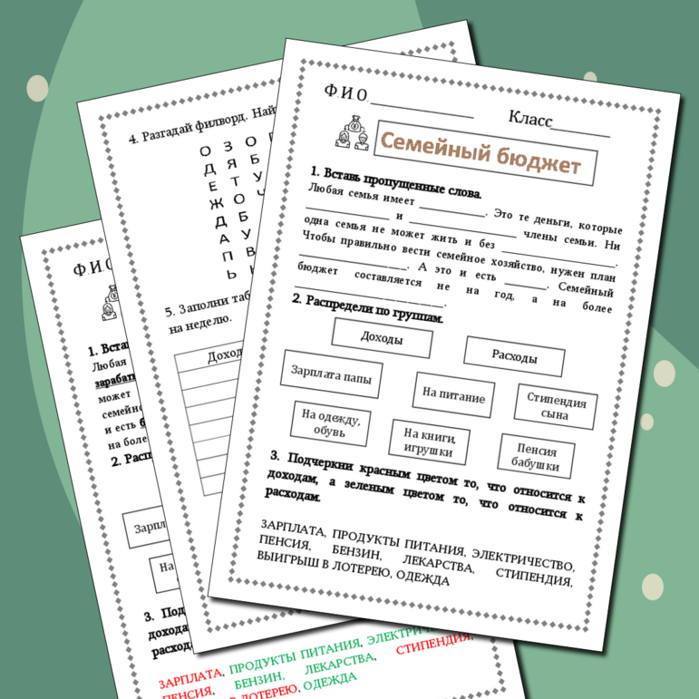Рабочий лист доходы семьи 106 фото