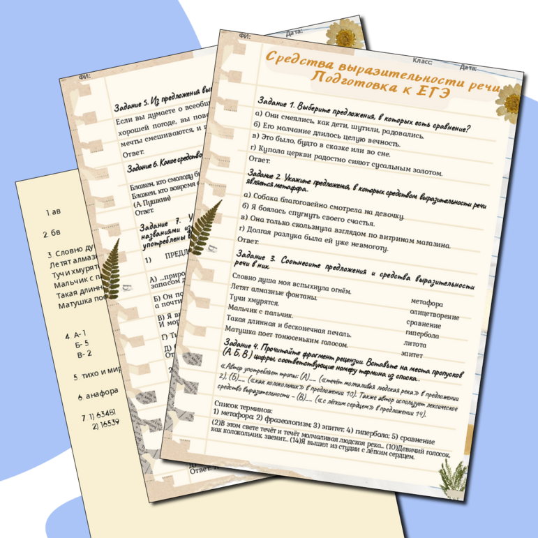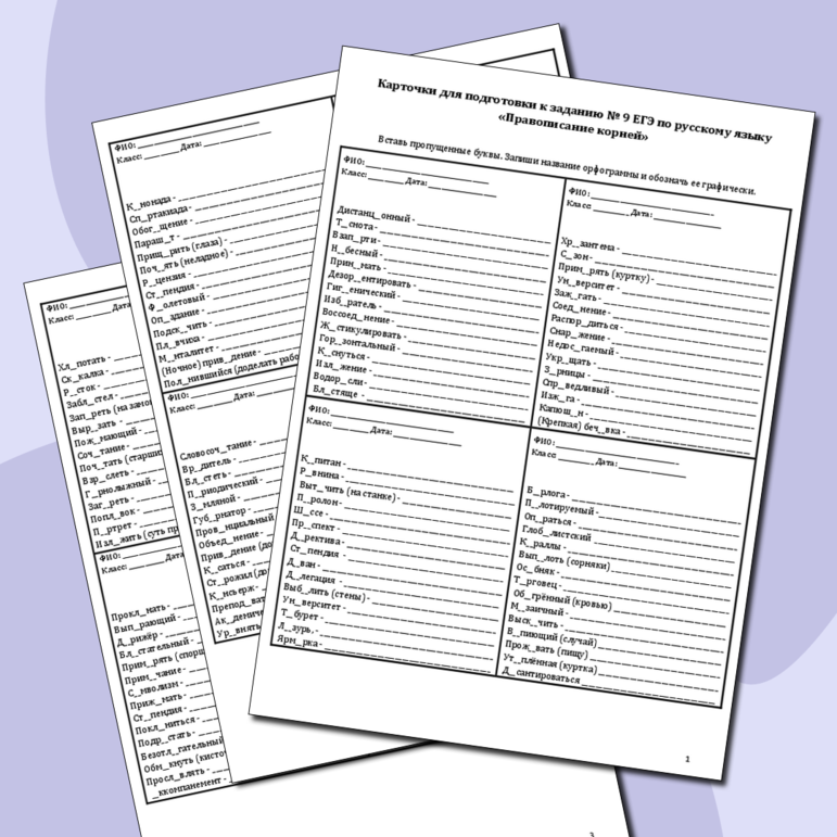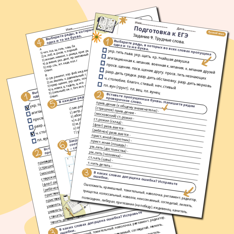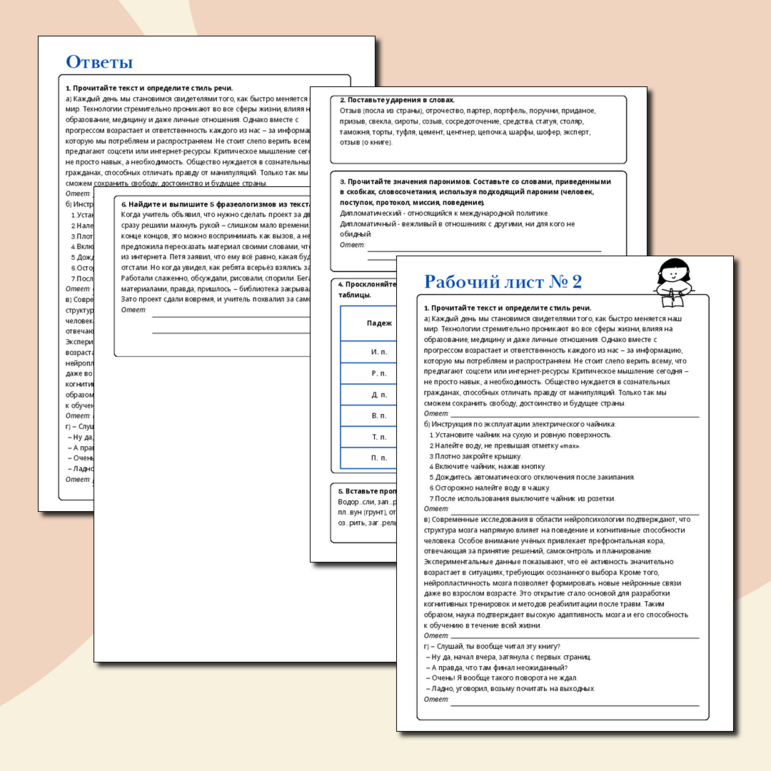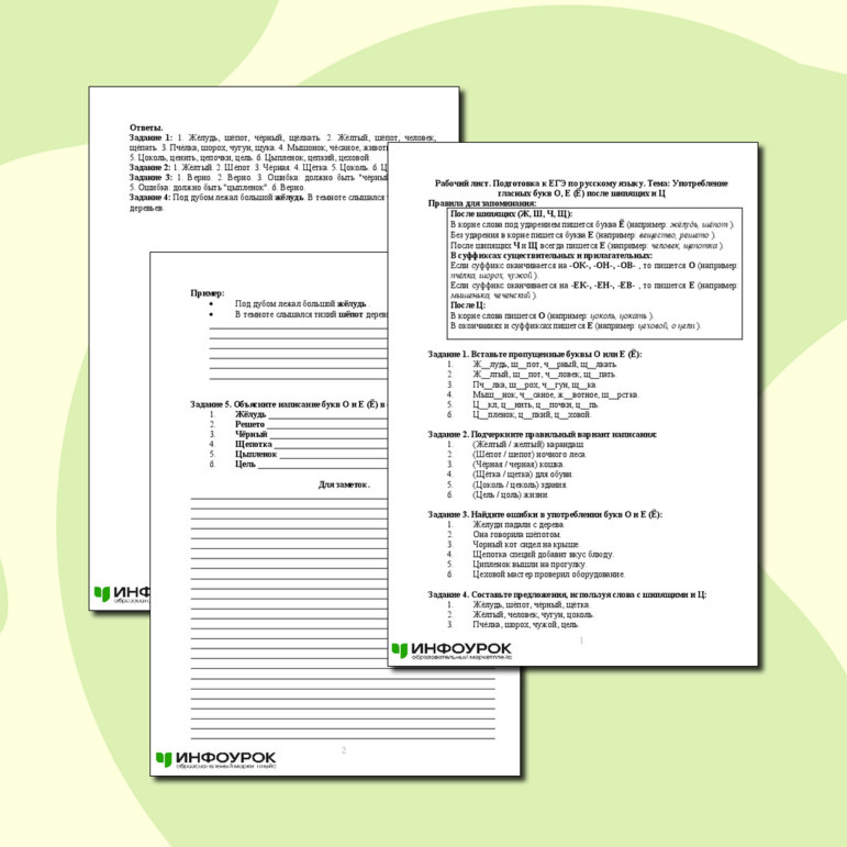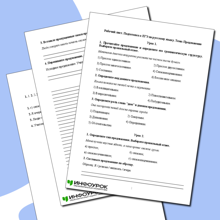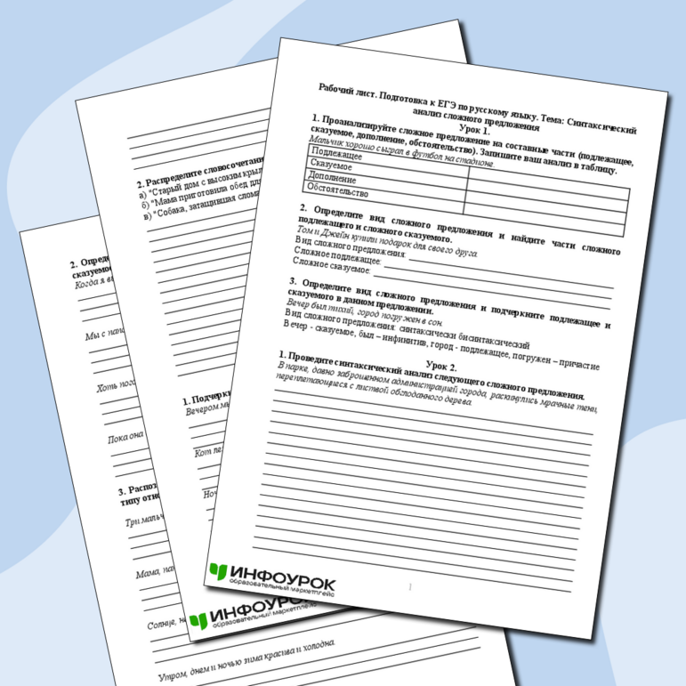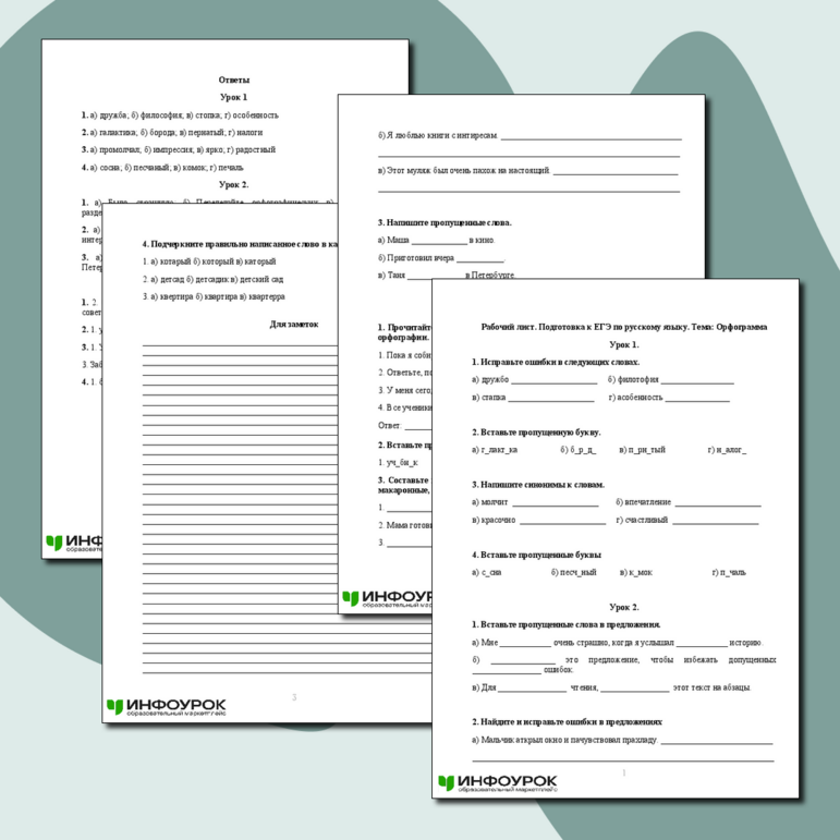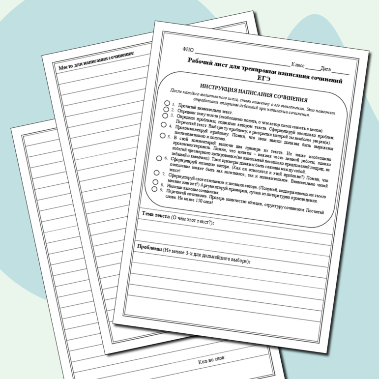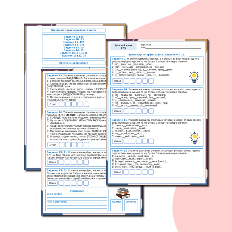 Рабочий лист егэ по русскому