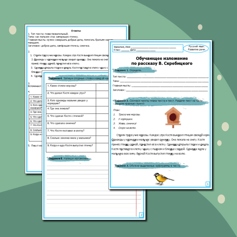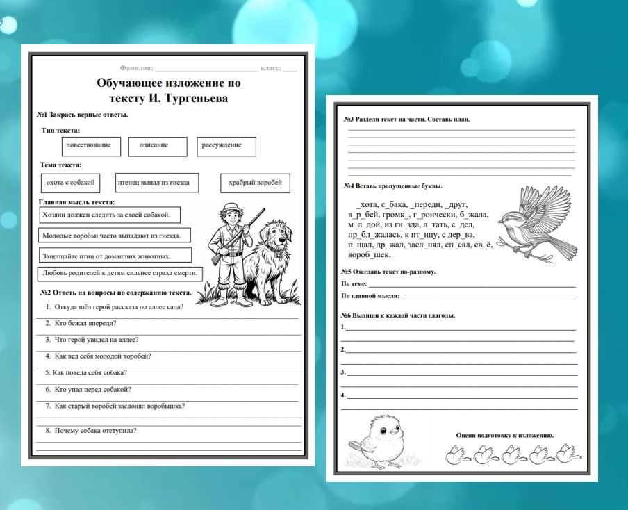 Рабочий лист изложение воробей